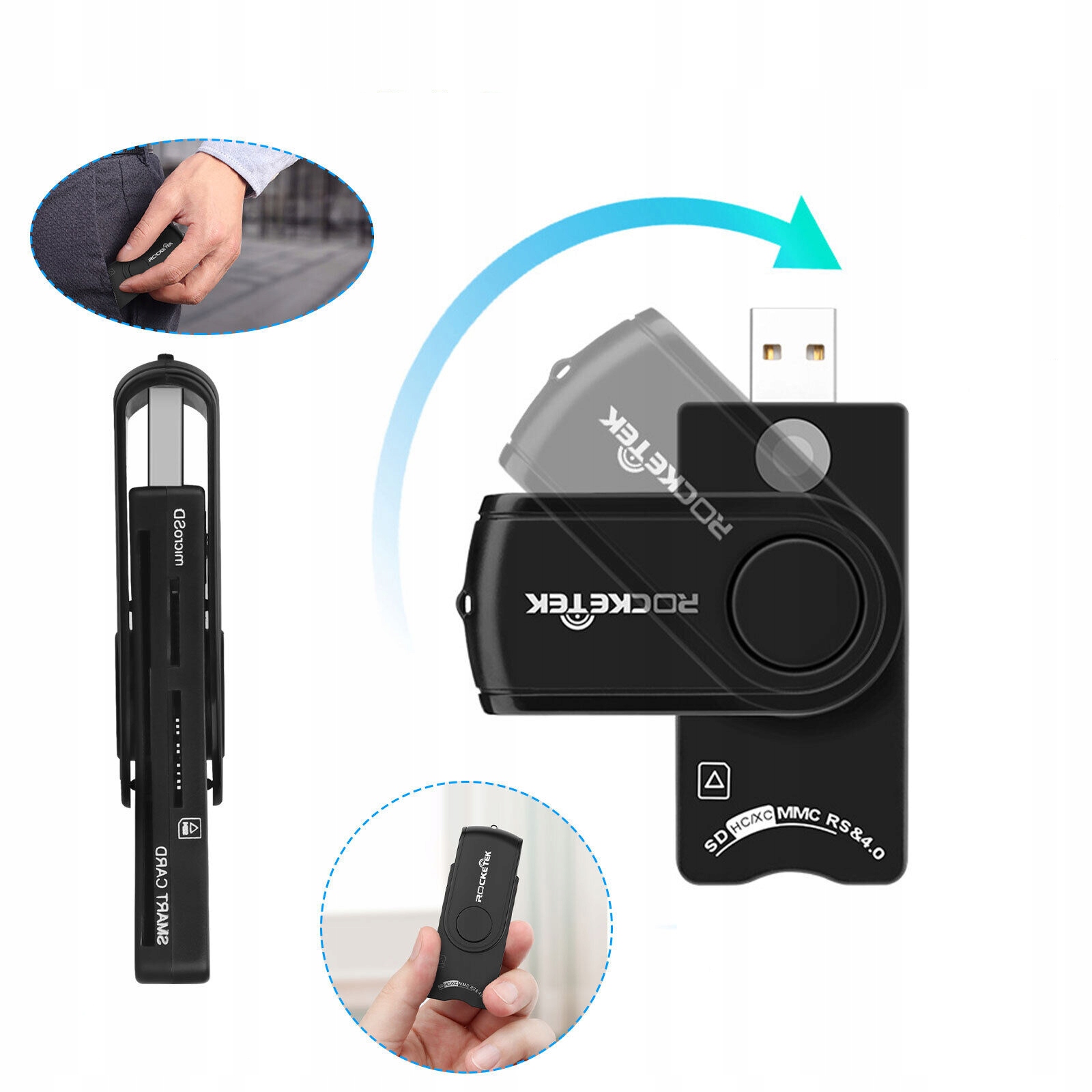 PRZENOŚNY ADAPTER CZYTNIK INTELIGENTNY KART SIM MICRO SD M2 MS PLUG&PLAY