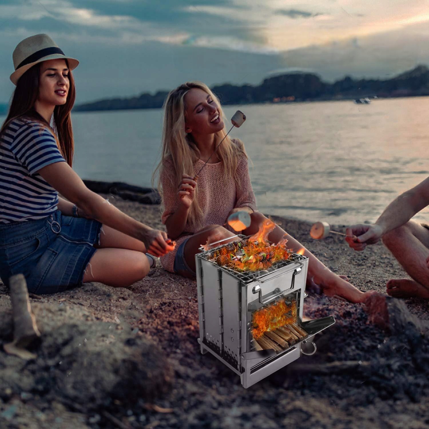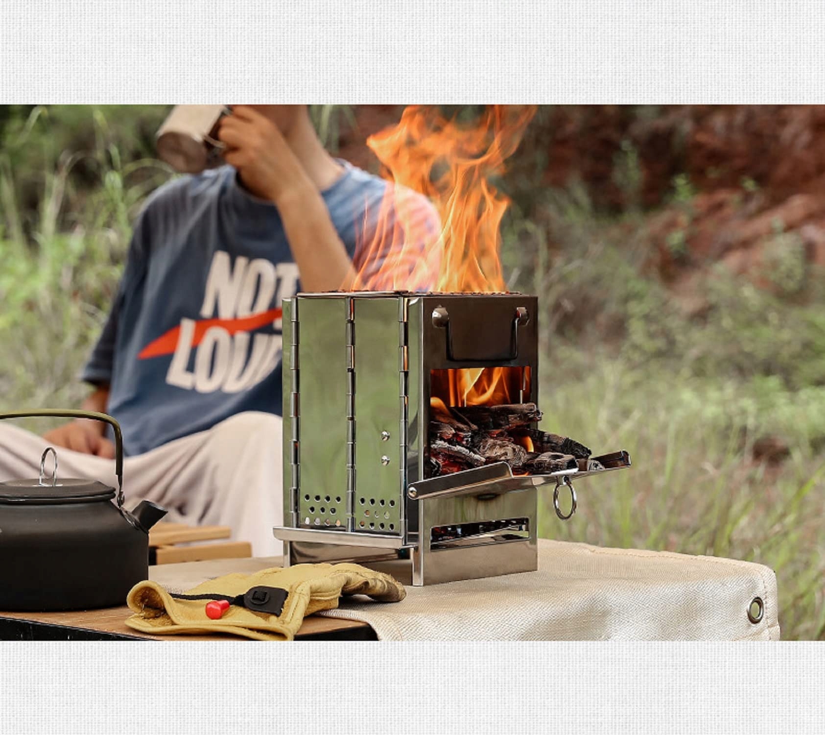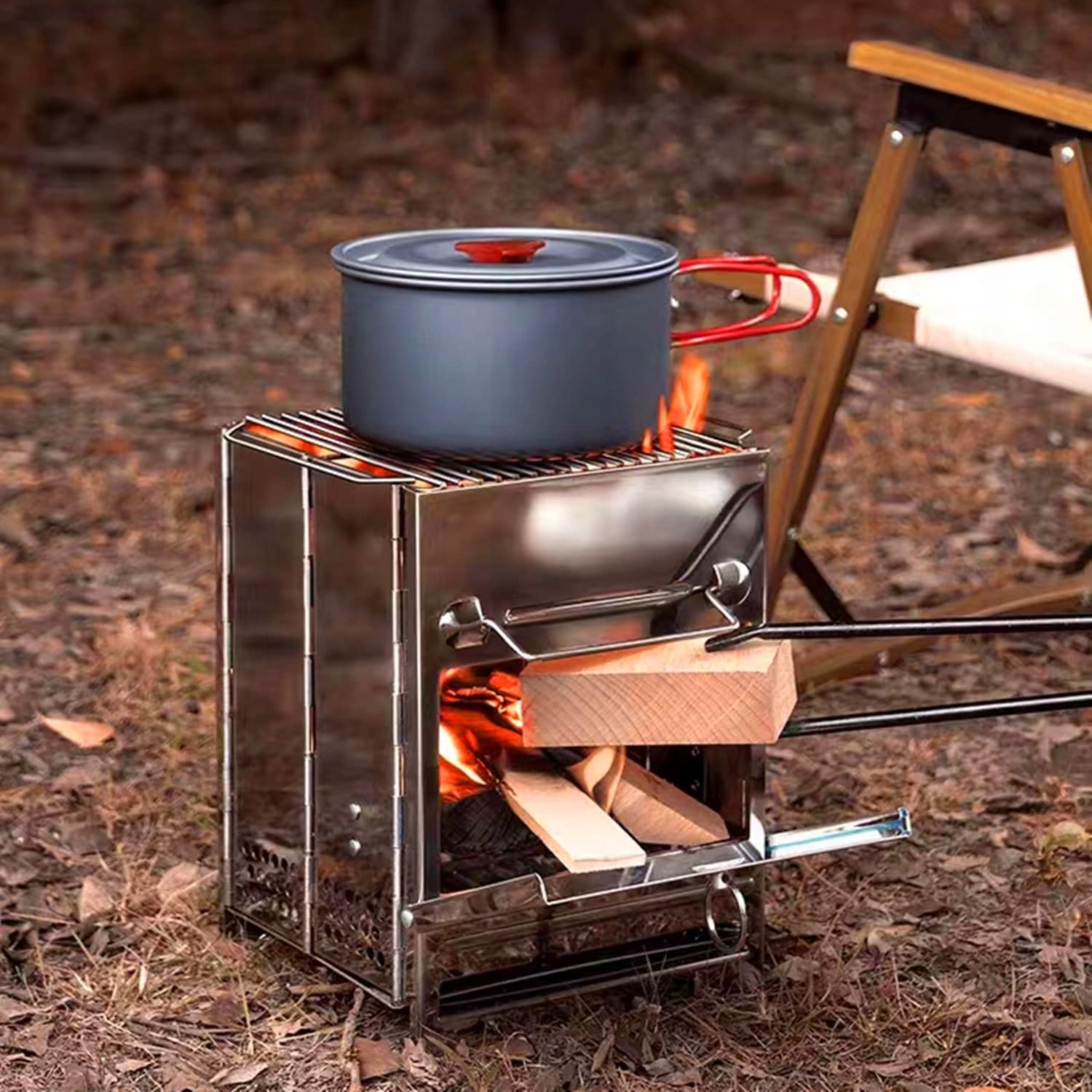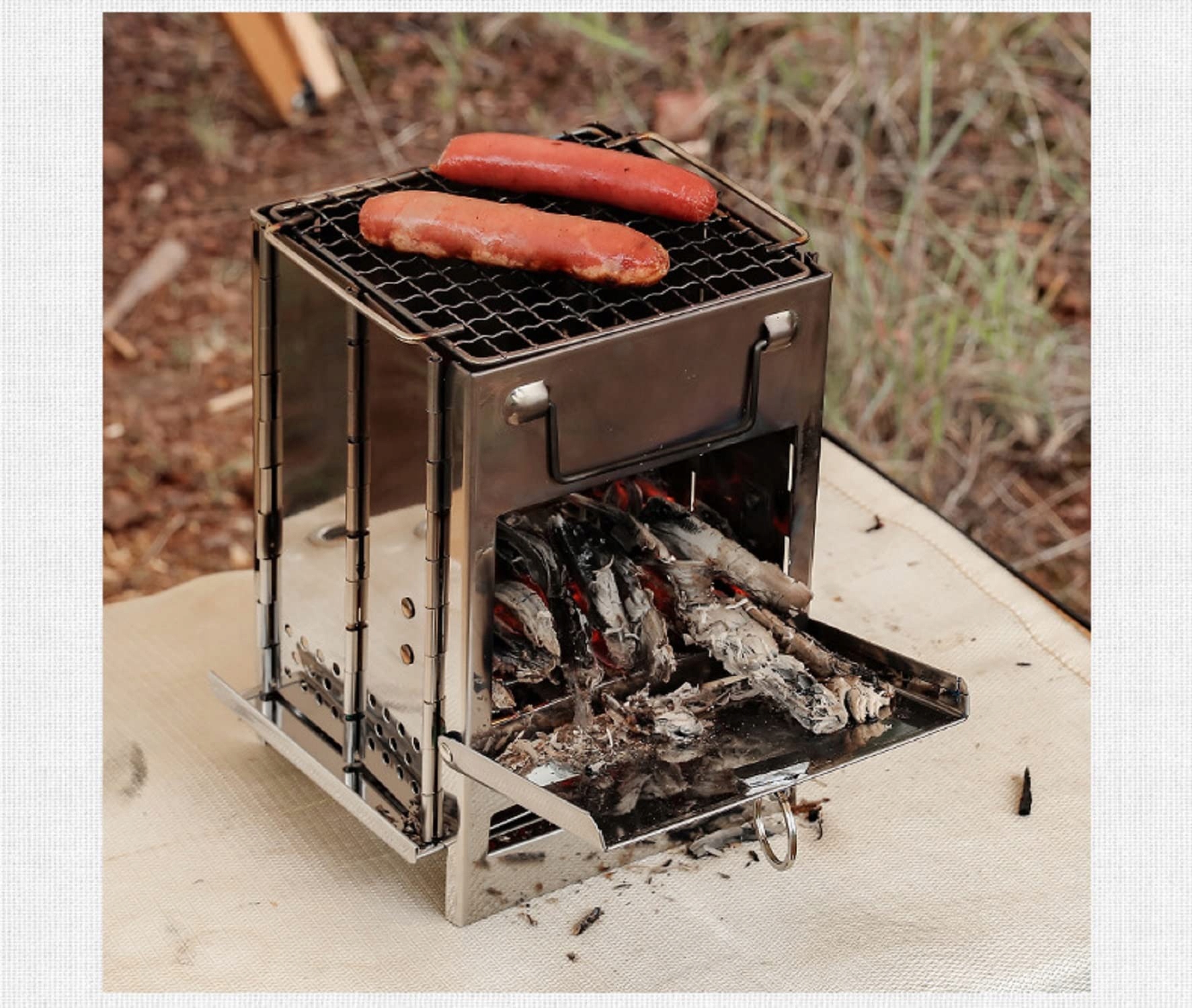PRZENOŚNY PIECYK DREWNO KUCHENKA KEMPINGOWA SKŁADANA STAL NIERDZEWNA FW-01