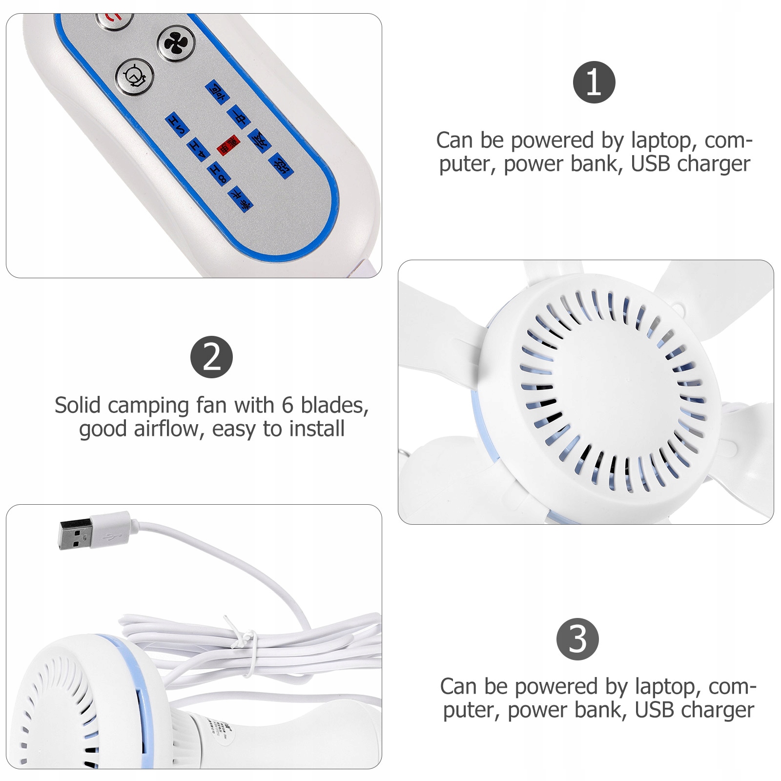 PRZENOŚNY WENTYLATOR SUFITOWY USB DO NAMIOTU NA KEMPINGU