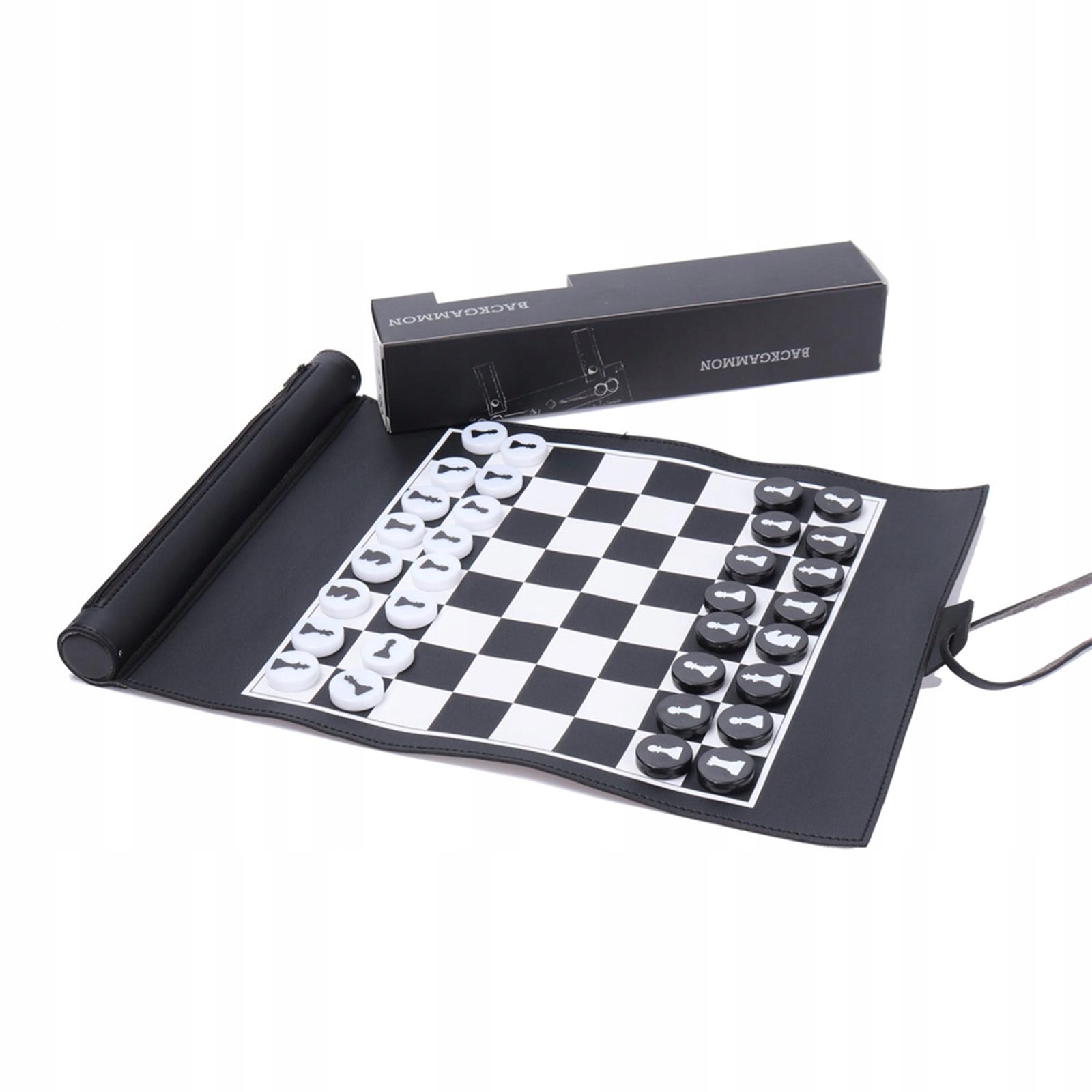 Дизайнерский набор шахмат из искусственной кожи с 32 черными и белыми фигурами.