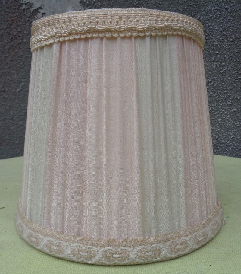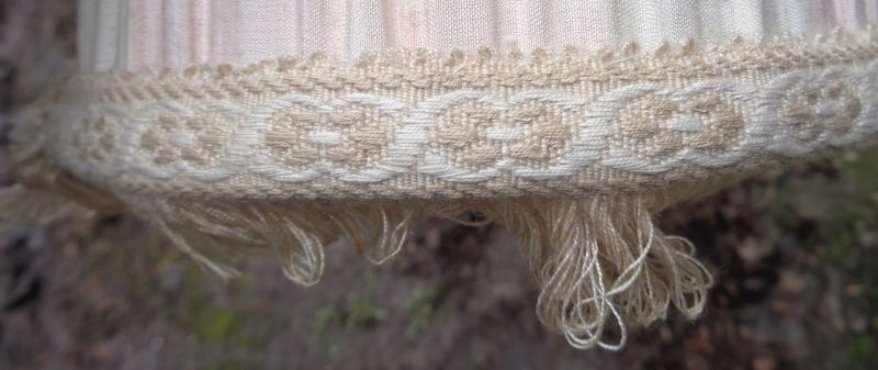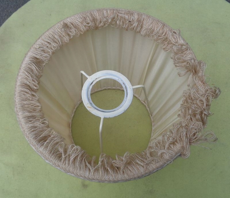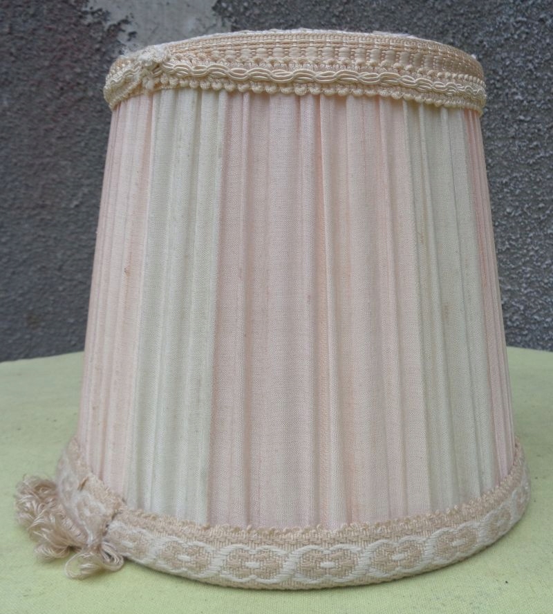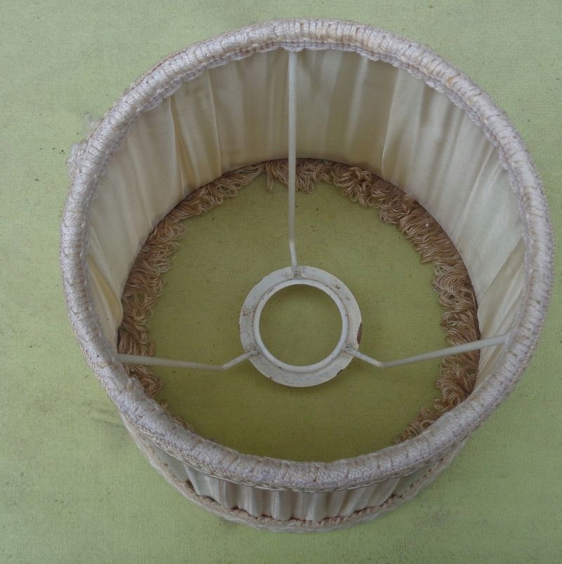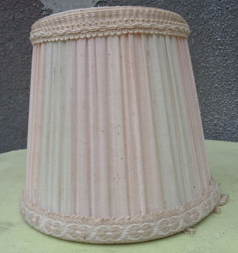 Интересный, интересный абажур из материала для офисной лампы 1960-х годов. Навес экспоната выполнен из интересного складчатого материала. Низ экспоната украшен интересной, богато декорированной полосой ткани, которая в нижней части декорирована нежной бахромой. Верх абажура также украшен интересной декоративной тканевой полоской. Абажур не имеет повреждений. Всем рекомендую.