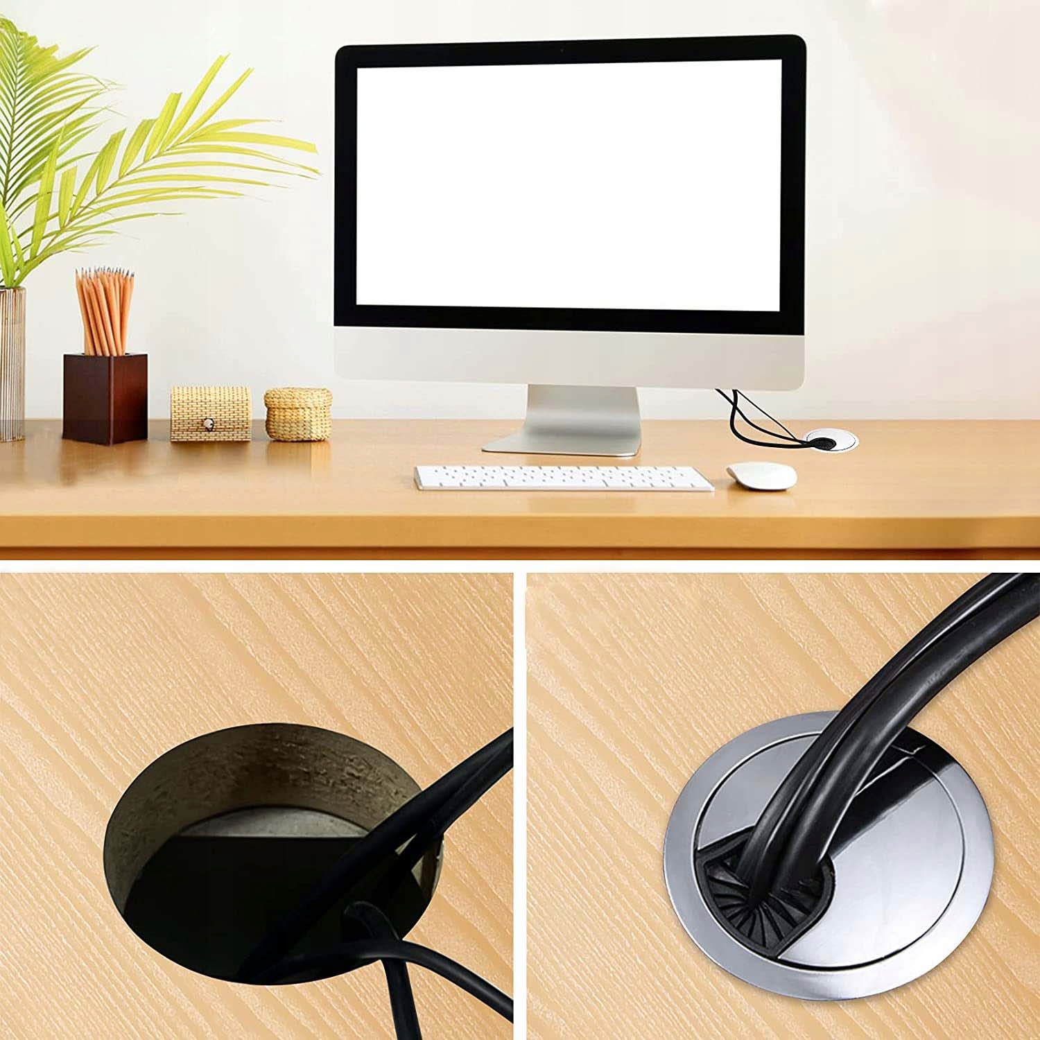 Кабельный ввод с диаметром отверстия 60 мм от ГТВ. Он предназначен для установки на столешницы мебели, например, столы для переговоров, письменные столы, кухонные столешницы. Обеспечивает удобную прокладку кабеля в мебели. Кабелепровод оснащен крышкой и щеткой для защиты от пыли, закрывающей отверстие, через которое проходят кабели.