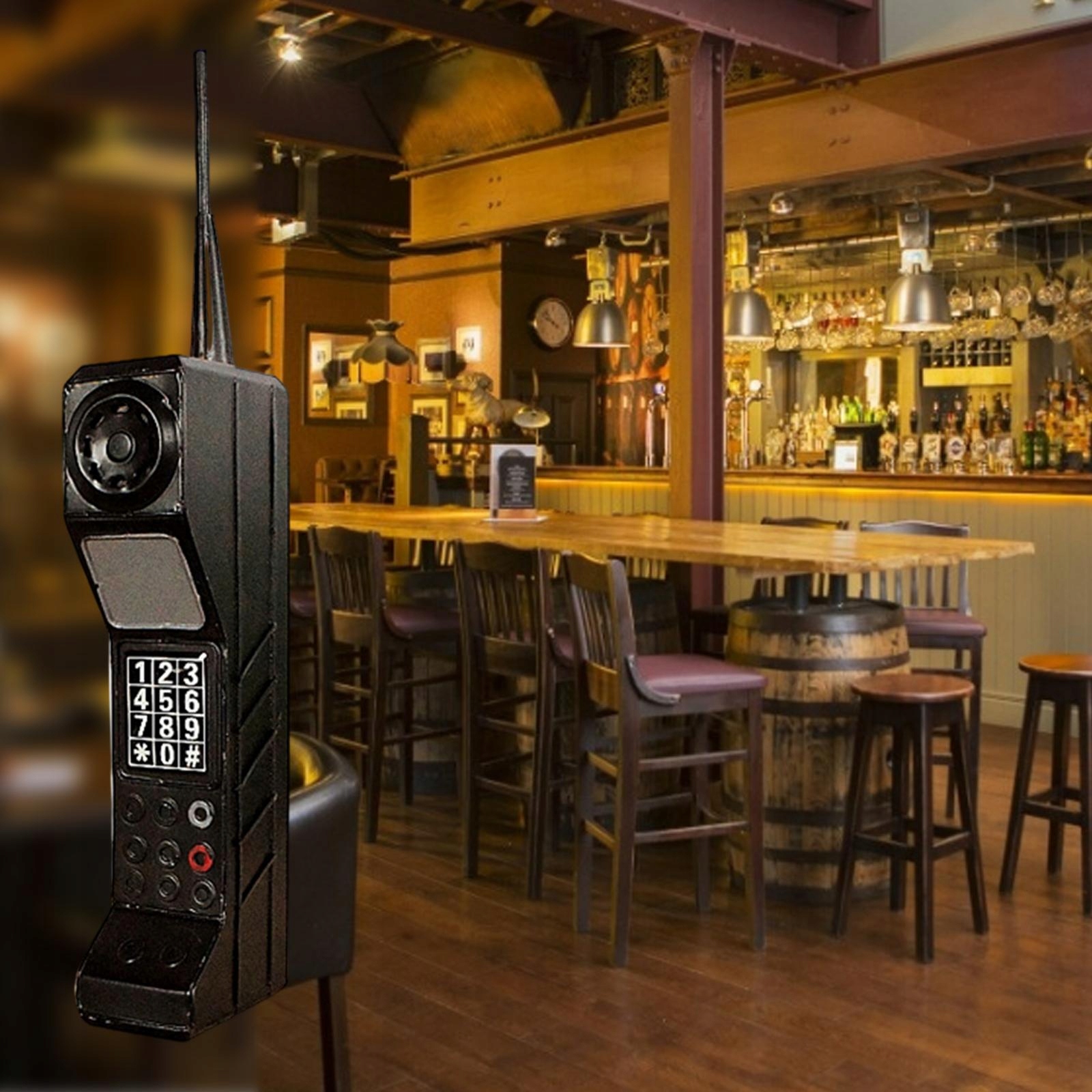 Przestarzały żelazny model telefonu komórkowego, dekoracja telefonu komórkowego w stylu retro, czarna folia