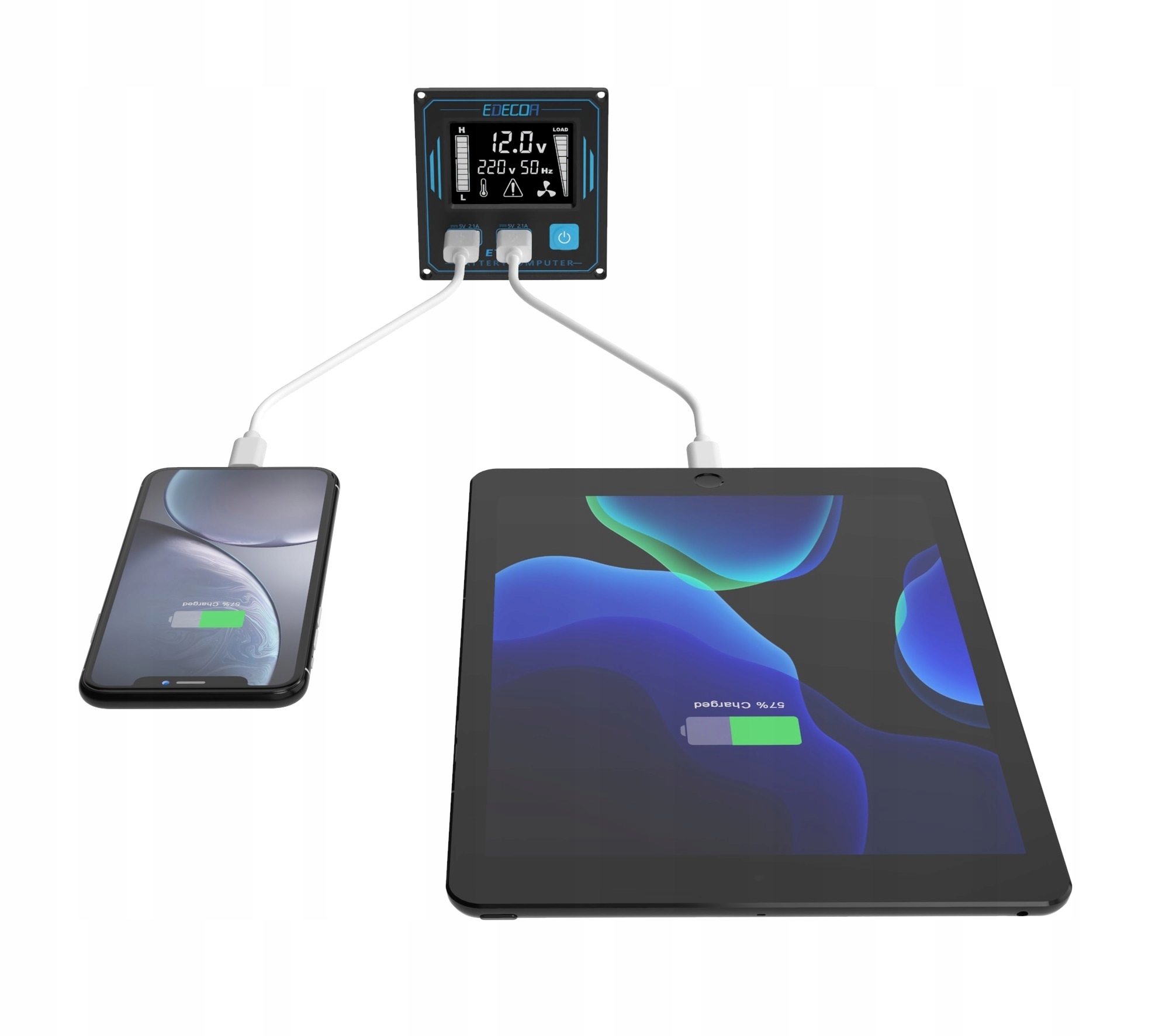 Инвертор оснащен дисплеем, на котором отображается наиболее важная информация, включая ток потребление и напряжение аккумулятора. Он подключается к конвертору с помощью прилагаемого кабеля