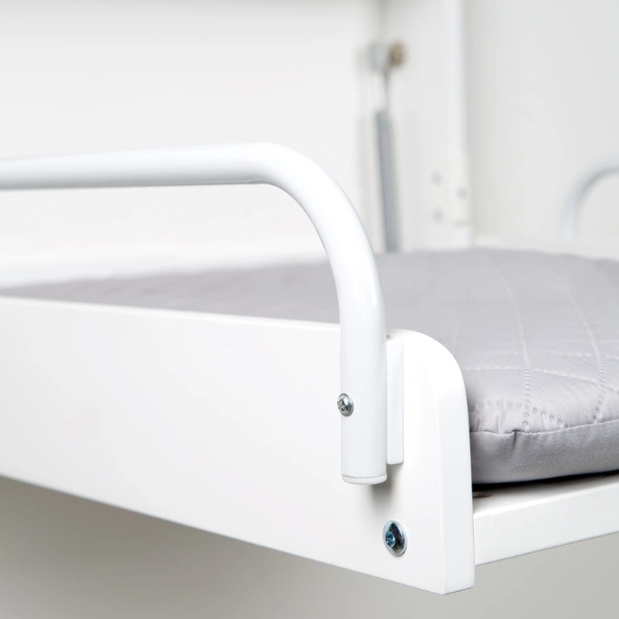 Roba Настенный пеленальный столик с пеленальным ковриком в Современный стиль - благодаря двум полкам и небольшим размерам - занимает мало места и очень практичен. Благодаря амортизаторам пеленальный столик можно медленно и безопасно сложить и снова закрыть. Настенный пеленальный столик можно закрепить на нужной высоте, что превратит уход за малышом в удовольствие для родителей и малыша. Благодаря защитным боковым полоскам можно безопасно менять подгузники от рождения до веса 15 кг.