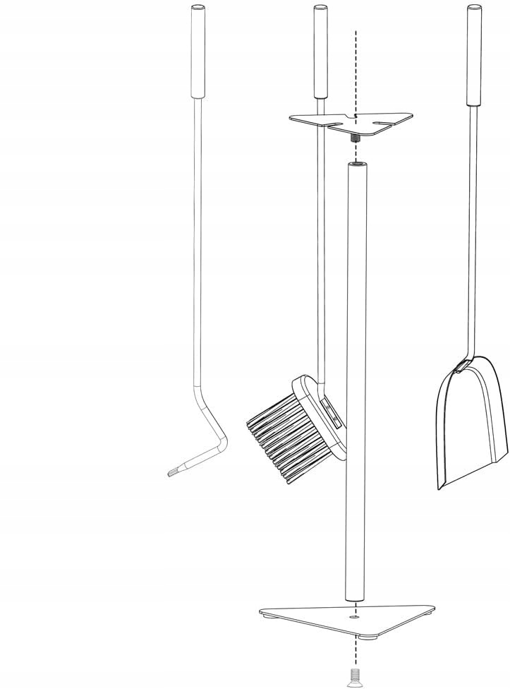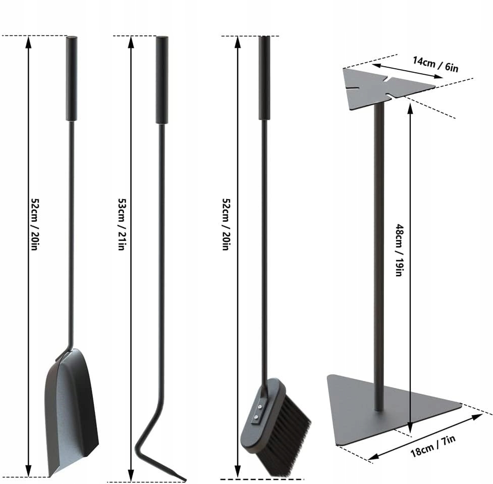 PRZYBORY DO KOMINKA AKCESORIA ZESTAW 4w1 STOJAK POGRZEBACZ MIOTŁA SZUFELKA