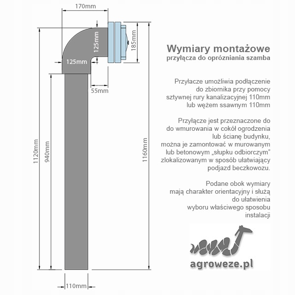 Przyłącze PVC do opróżniania szamba 4" L-116cm