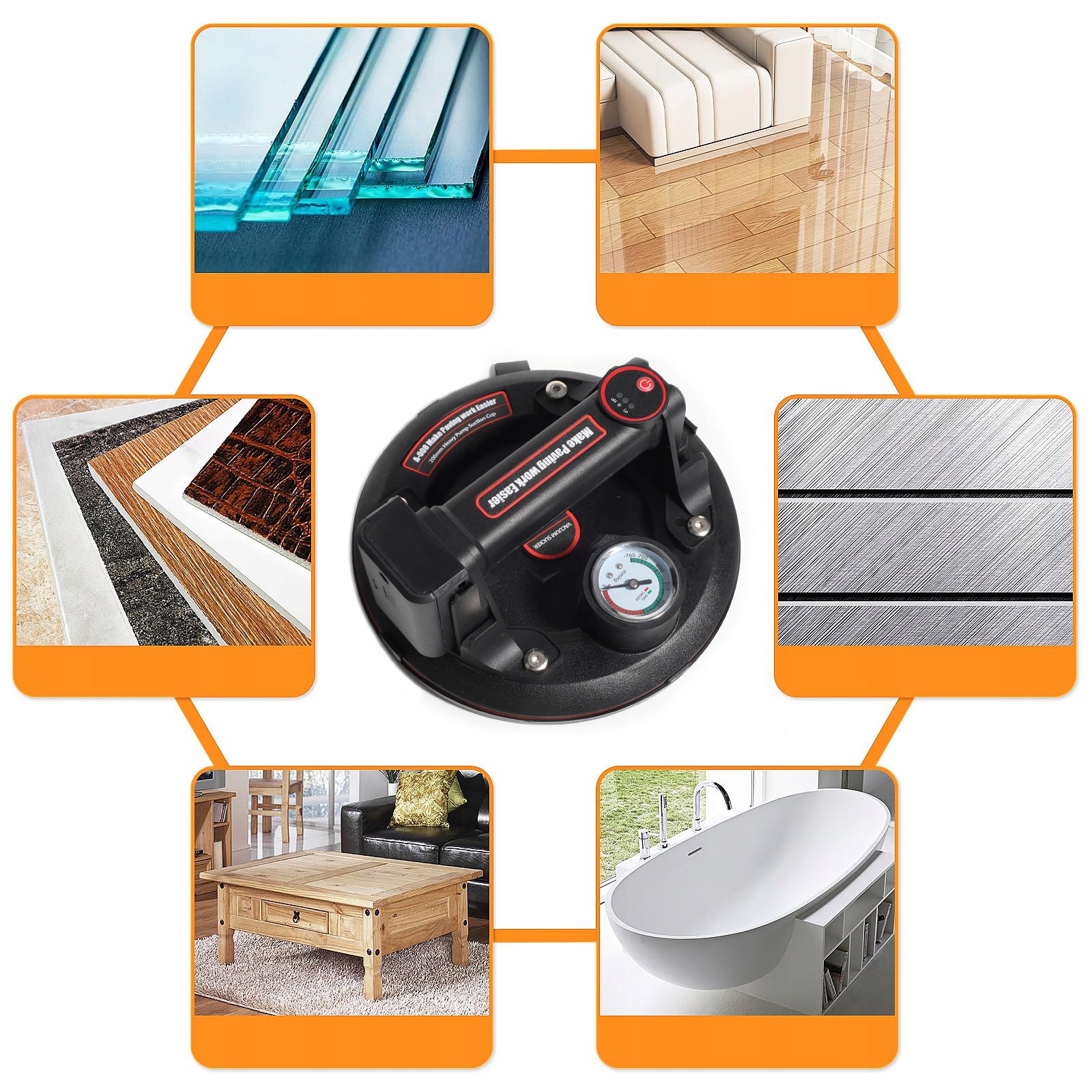 Электрическая присоска позволяет безопасно поднимать данные на гладкие и сухие поверхности, такие как керамическая плитка, керамогранит или стекло, путем создания стабильного вакуумного давления.