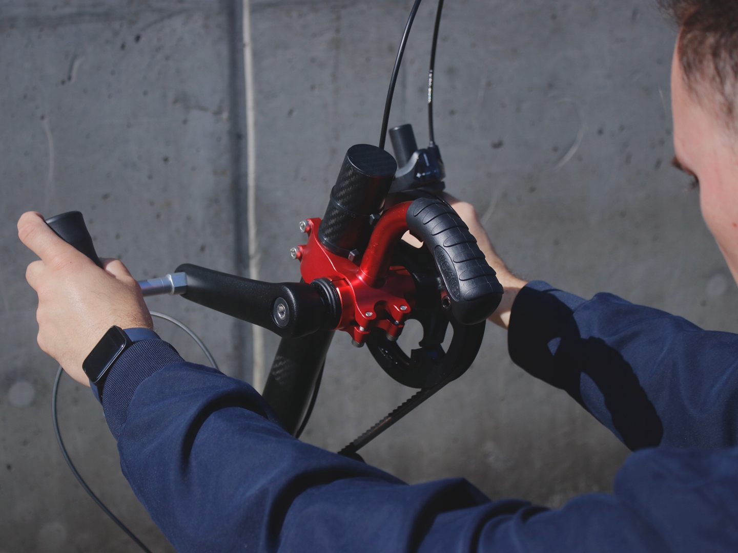 Оснащена трехступенчатой планетарной передачей Shimano, торпедным тормозом и 16-дюймовым накачиваемым колесом. Изготовлен из углеродного волокна, он весит чуть более 10 кг. Простая установка с двумя пряжками, зубчатым ремнем с натяжителем, держателем для бутылки с водой. В комплект входит насос и набор инструментов. Высота крепления примерно 130 см.