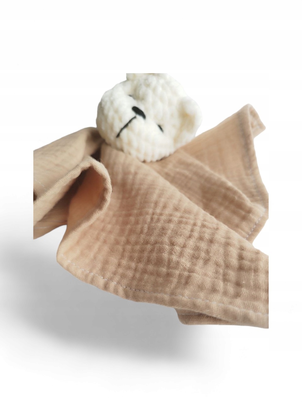 Przytulanka muslinowa uspokajacz niemowle Miś beżowa pieluszka 30x30 cm