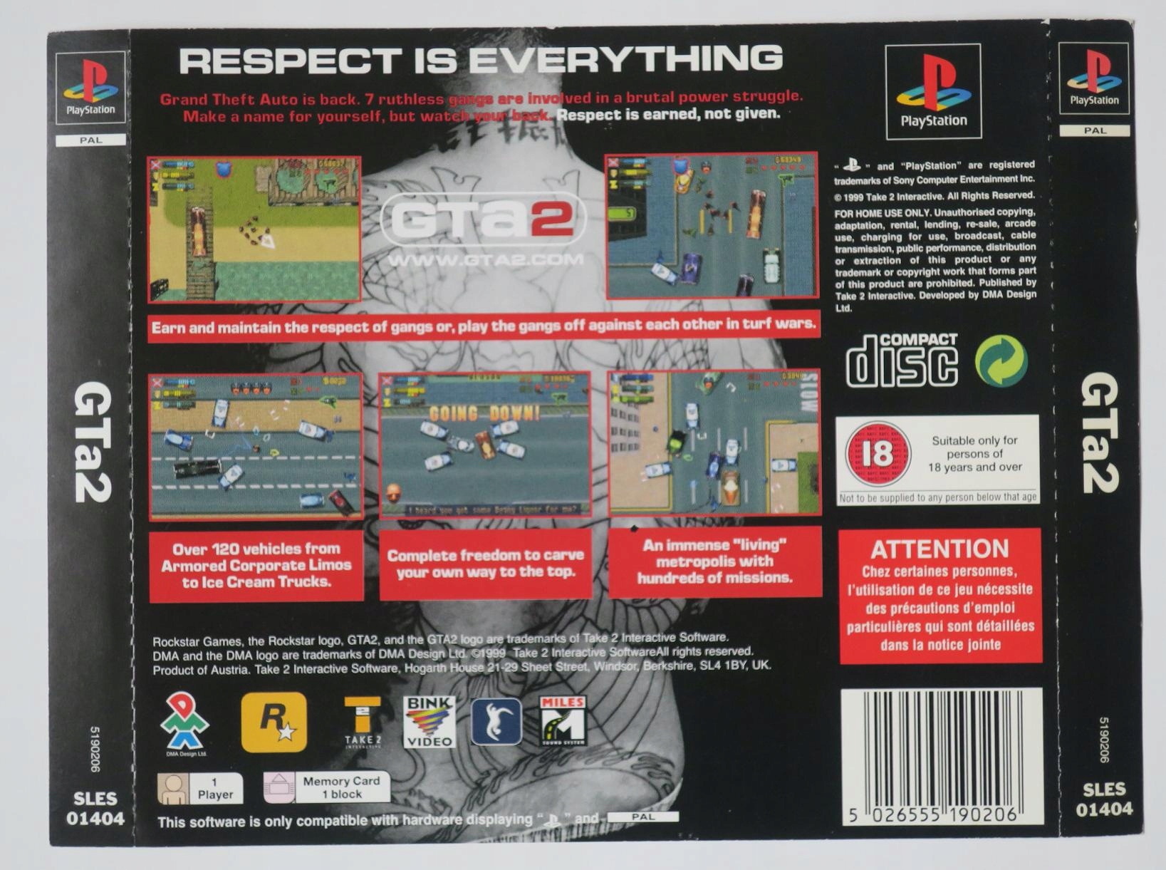 PS1 GTA 2 GRAND THEFT AUTO II ЗАДНЯ КРИШКА PLAYSTATION 1 PSX