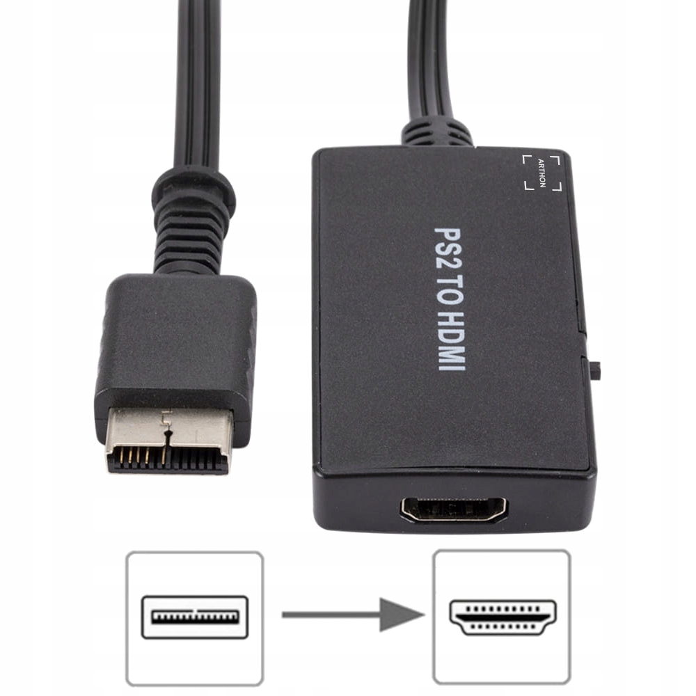 Адаптер от вилки AV PS2 к разъему HDMI. Изображение с консоли передается на разъем HDMI в цифровом виде. Это решение, позволяющее подключить консоль Playstaion к монитору или телевизору с портом HDMI. Масштабирование, используемое конвертером, позволяет воспроизводить игровой процесс на современных экранах в максимальном разрешении HDTV. Поддерживаются все режимы отображения консоли PS2: 480i / 480p / 576i и преобразованные в HDTV. Переключатель позволяет переключаться между разрешением 720P/18080P. Изображения, передаваемые в реальном времени, яркие и без каких-либо задержек. Устройство работает по принципу Plug&Play и не требует установки драйверов. Поддержка стандартных телевизионных форматов PAL, NTSC3.58, NTSC4.43, SECAM, PAL/M, PAL/N.