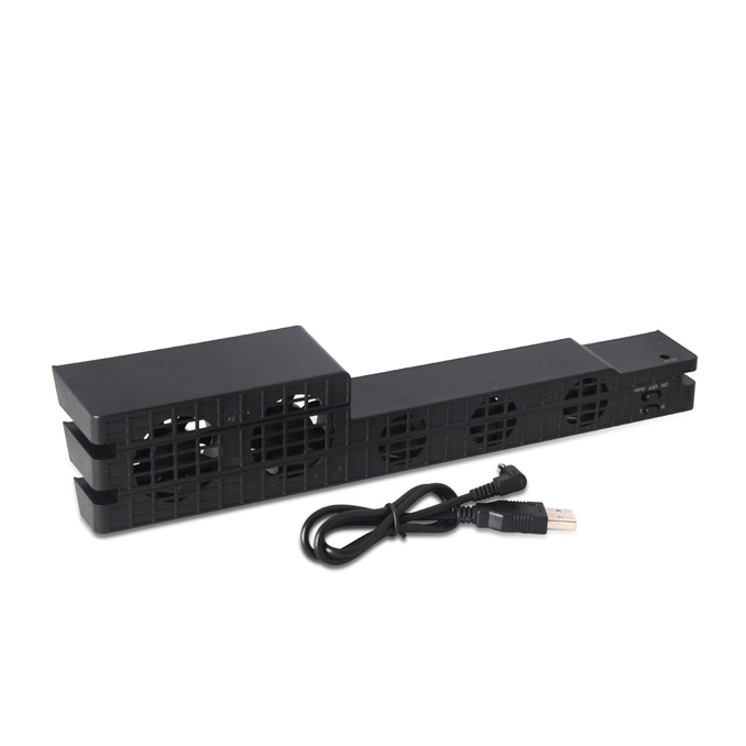 Высококачественный вентилятор для консоли PlayStation 4 PRO, обеспечивающий эффективное охлаждение. Это никак не ограничивает консоль, ее можно разместить или разместить на столе. Он оснащен пятью вентиляторами (2 больших, 3 маленьких) и тремя различными режимами охлаждения. Кнопка автоматического включения и выключения вентиляторов для поддержания стандартной температуры консоли (около 38 градусов). Турбо-скорость для игр, загружающих консоль. Питание вентилятора осуществляется через USB-порт. Благодаря этому устройству вы продлите срок службы консоли.