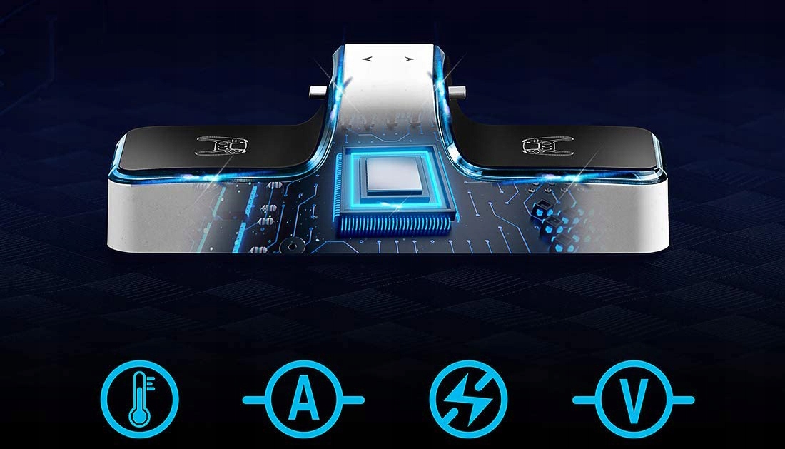 - Заряжает 2 контроллера одновременно