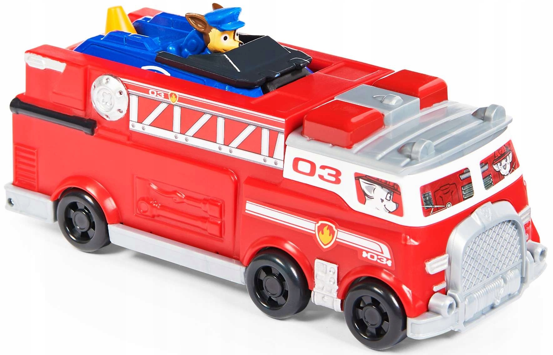 В комплект входят 2 автомобиля; Пожарная машина Маршалла и полицейская машина Чейза. Транспортное средство меньшего размера можно перевозить в пожарной машине.