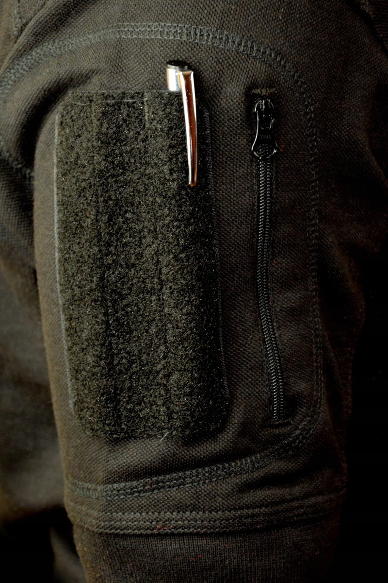 На обоих рукавах есть карман на молнии YKK и панели на липучке для крепления любых нашивок или эмблем, например, государственного флага, эмблемы подразделения.