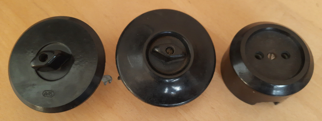 Pstryczek włącznik wyłącznik światła obrotowy gniazdko bakelit PRL loft