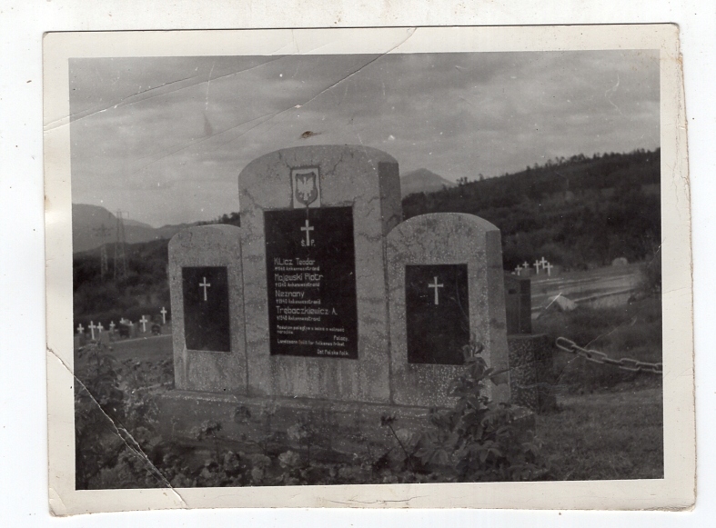Стэн как на сканировании - складки и разбивки, формат около 12/9 см, в обратном направлении, первоначально подписанный «Нарвик», на фото показывает первый памятник на могиле 4 солдат SBSP, замененного в более нынешнем - https://baza.polonika.pl/pl/obiekty/903521