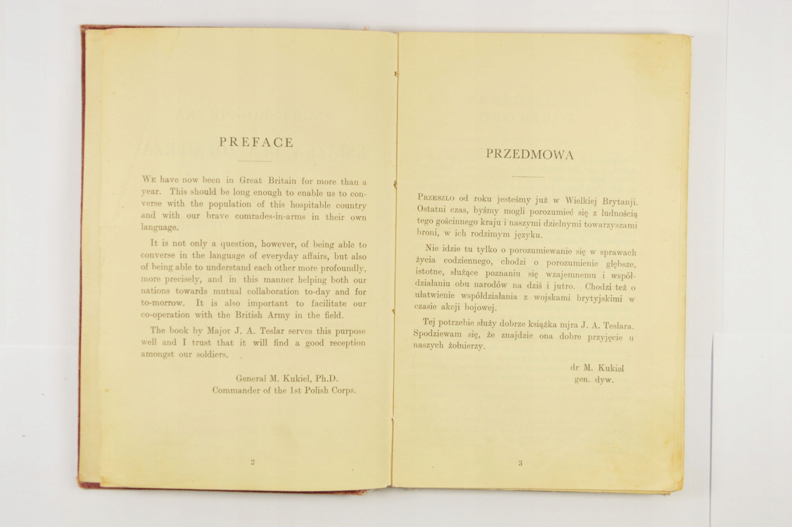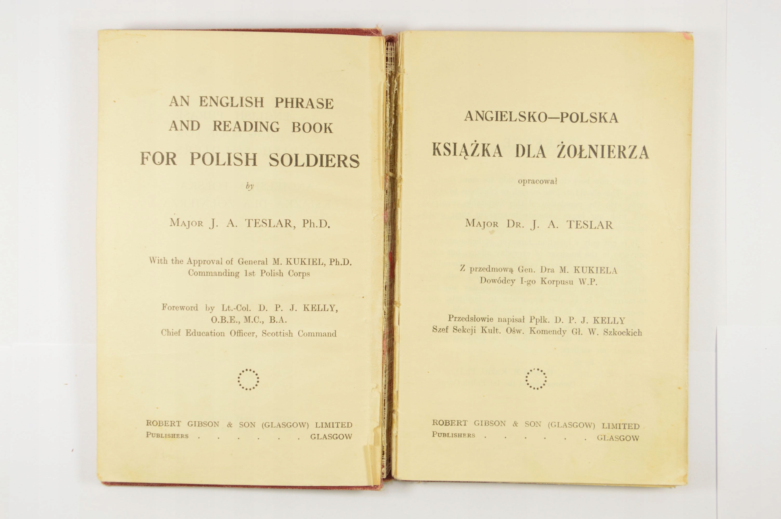 Оригинальная англо-польская книга для польского солдата ПСЗ на Западе - майор д-р. Дж. А. Теслар. Издательство Robert Gibson & Son, Глазго. Твердый переплет, 157 страниц, полное издание. Имя и адрес солдата на первой странице, корешек частично разболтан, колодка целая.