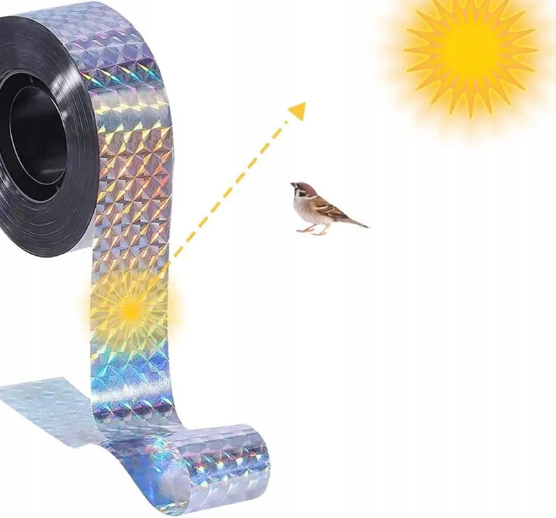 Эффективный, безопасный и экологический метод для пугающих птиц! Серебряная рефлексивная лента будет эффективно защищать ваш сад, балкон, террасу или пахотное поле от нежелательных гостей. Благодаря уникальной поверхности, отражающей свет, она создает запутанные отражения, которые эффективно сдерживают птиц, не причиняют им вреда.
