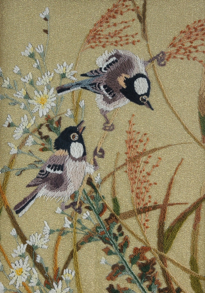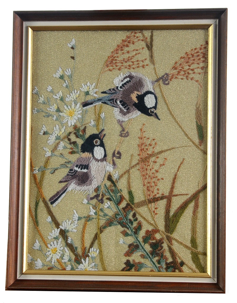 «Птицы и цветы» - Эмбруэтерированное изображение за стеклом - красиво !!!