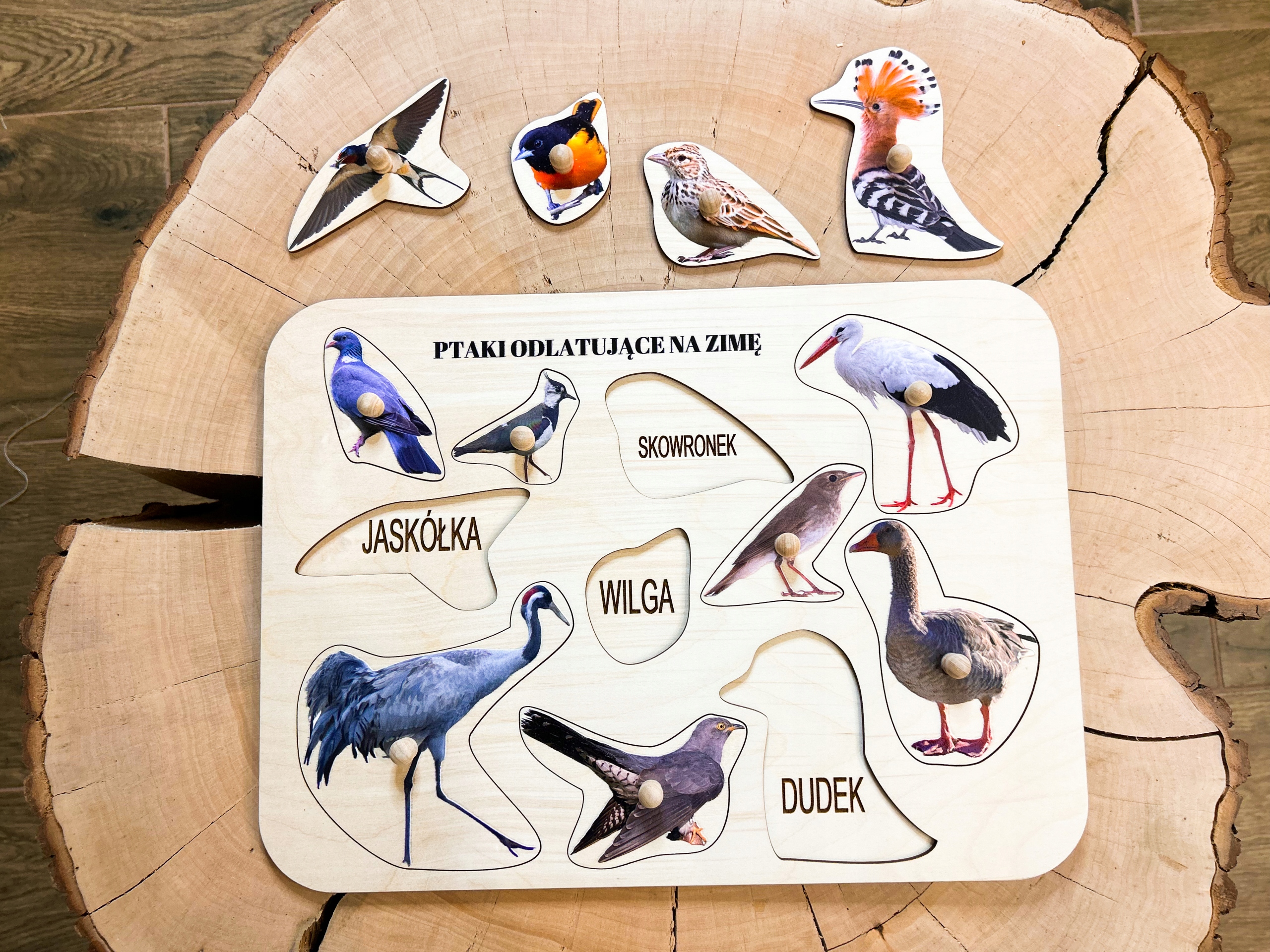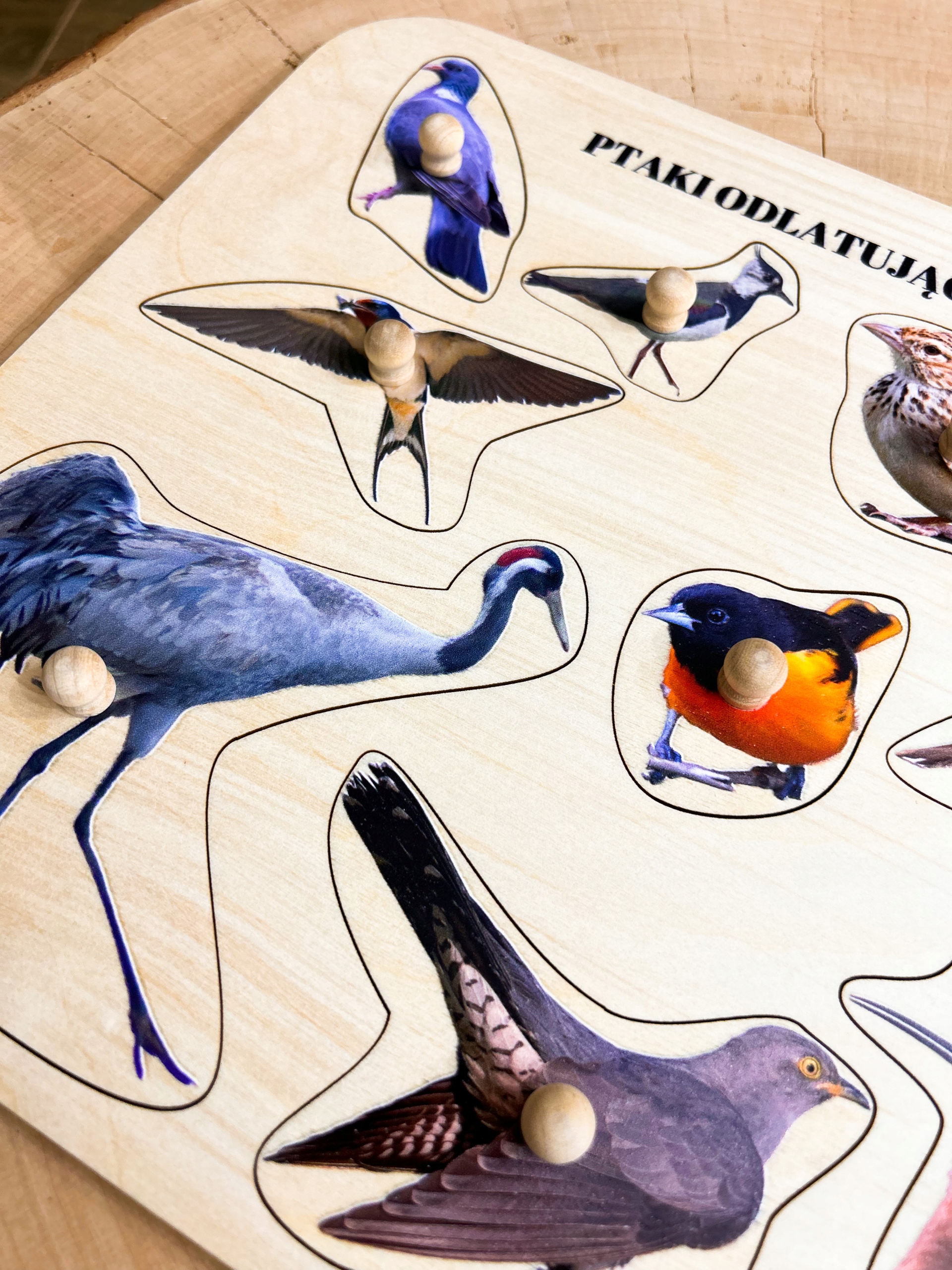 Птахи відлітають на зиму дерев'яний пазл з ручками і підписами