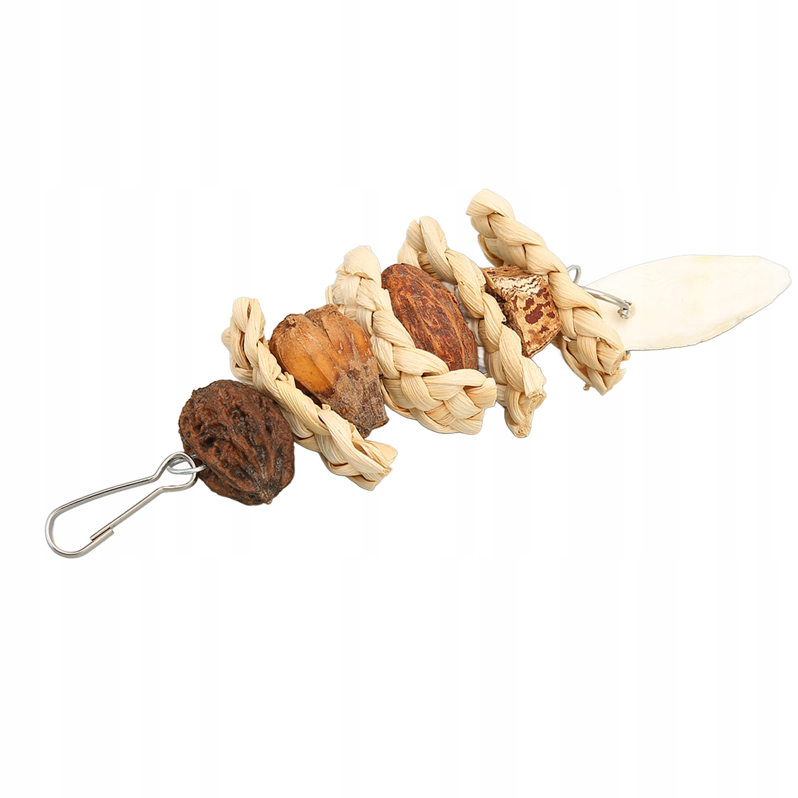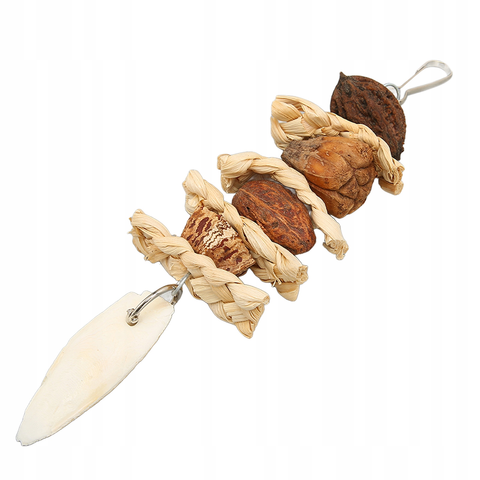 Жевательная игрушка в виде птицы, сделанная вручную, кукурузные листья, орехи, кость каракатицы, попугай, подвесная жевательная игрушка с крючком из нержавеющей стали