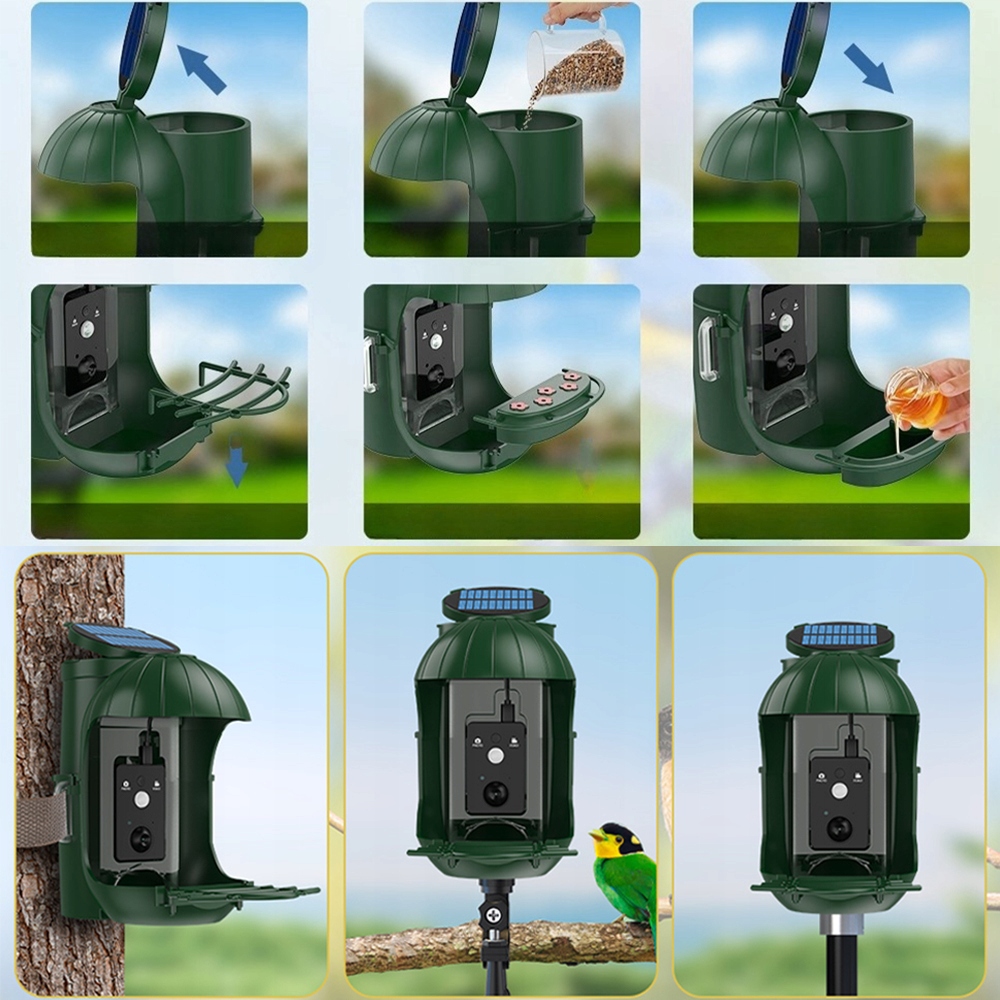 🏡 кормушка для птиц с HD 720p 110 ° камеры PIR -датчик