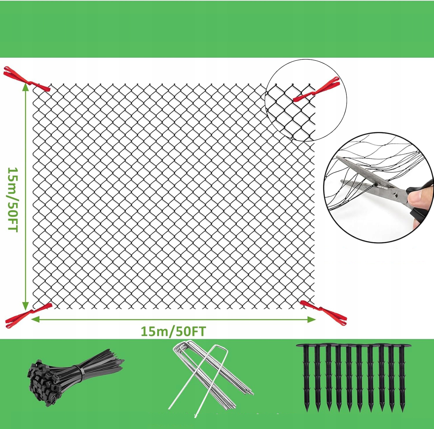 - ⭐ 【【Легко в использовании】: Тщательно отрежьте садовую сетку до желаемого размера, установите сетку, защищающую от птиц на монтажных столбах, и прикрепите гвоздь к земле, затем затяните сеть с помощью зажимных полос. Его также можно использовать в качестве сетки Grosze и Strawberry.