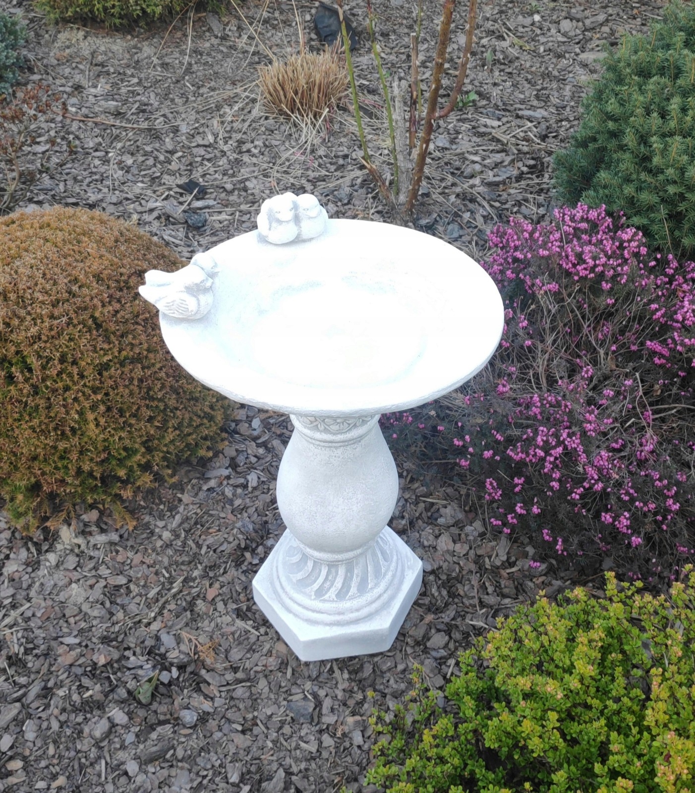 В поилке предусмотрено место для воды, которую можно регулярно доливать, чтобы птицы могли купаться и пить. Фигурки четырех птиц, размещенные по краям поилки, добавляют очарования и приглашают к игре. Птицы наверняка будут рады такому месту, где они смогут найти приют и воду, и в то же время наблюдать за красотой окрестностей.