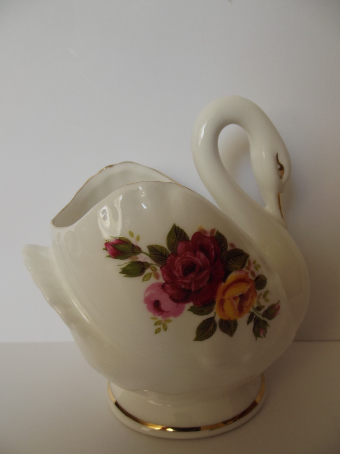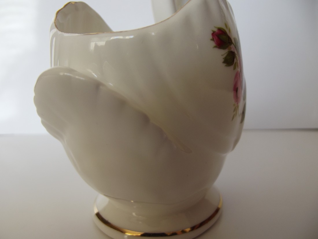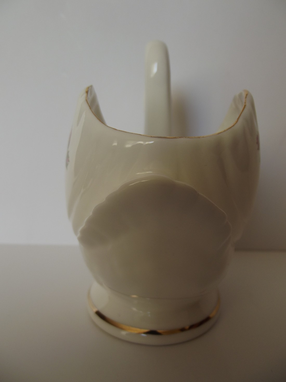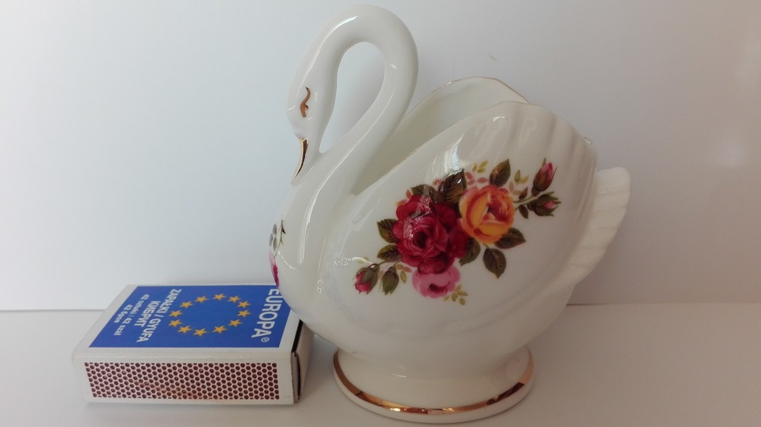 Красивый, коллекционеры, фарфоровая статуэтка-попор- с розовым мотивом. Вы можете использовать фигурку в качестве контейнера для зубочистков, специй, меда и т. Д. Посмотреть с тонким костяным фарфором, кабиной розы ». Сделано из очень хорошего качества фарфора, с позолочкой. Предмет не новый.