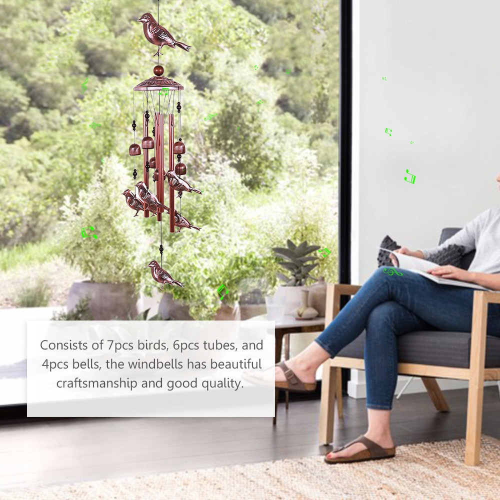 Птичья ветра 4 алюминиевые трубки 6 колоколов 7 Виндбеллс птицы к MR