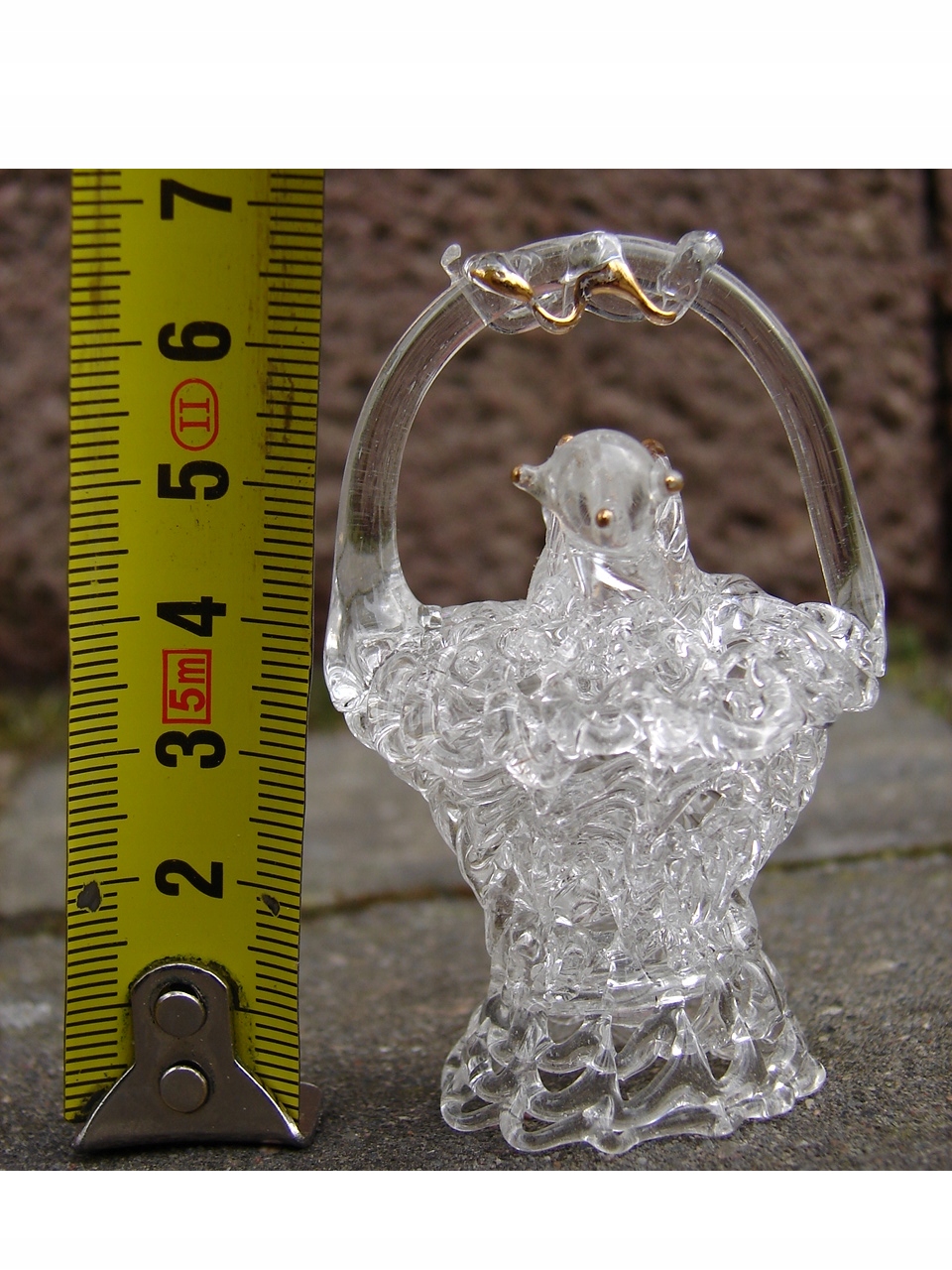 Птица в корзине, миниатюрная стеклянная статуэтка ручной работы.