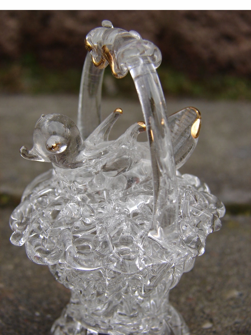 Птица в корзине, стеклянная статуэтка ручной работы.