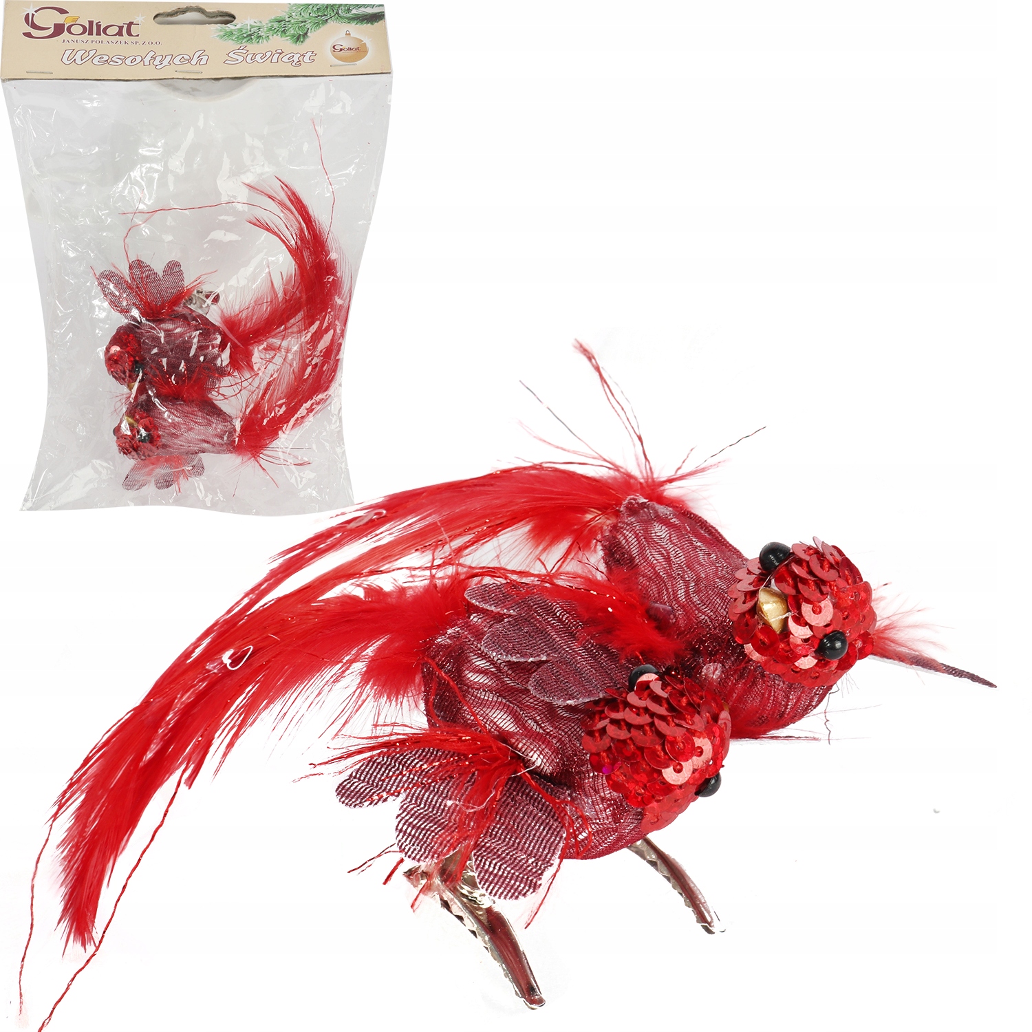 PTASZKI NA KLIPSACH 2SZT CZERWONE OZDOBA ŚWIĄTECZNA STROIK CHOINKA