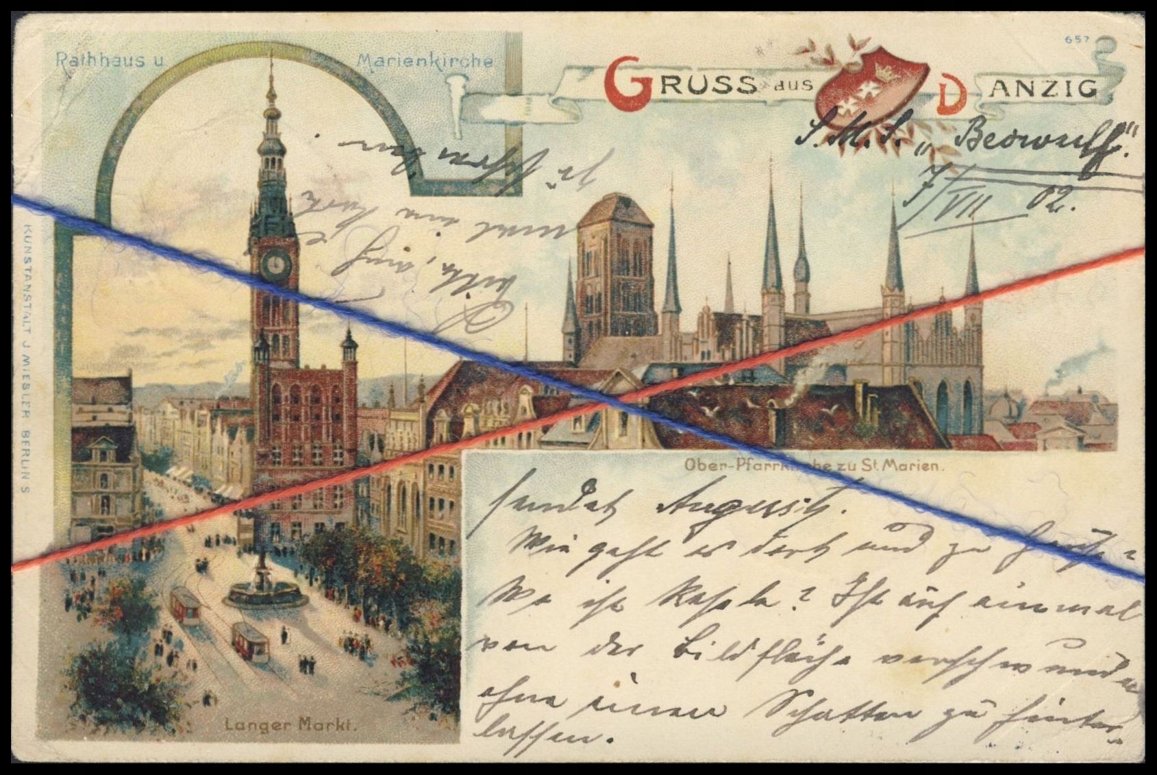 PTP - ГДАНЬСК # ДАНЦИГ # РАТУША, ЦЕРКОВЬ МАТЕРИ, ДУГИ ТАРГ ОТКРЫТКА 1902 ГОДА