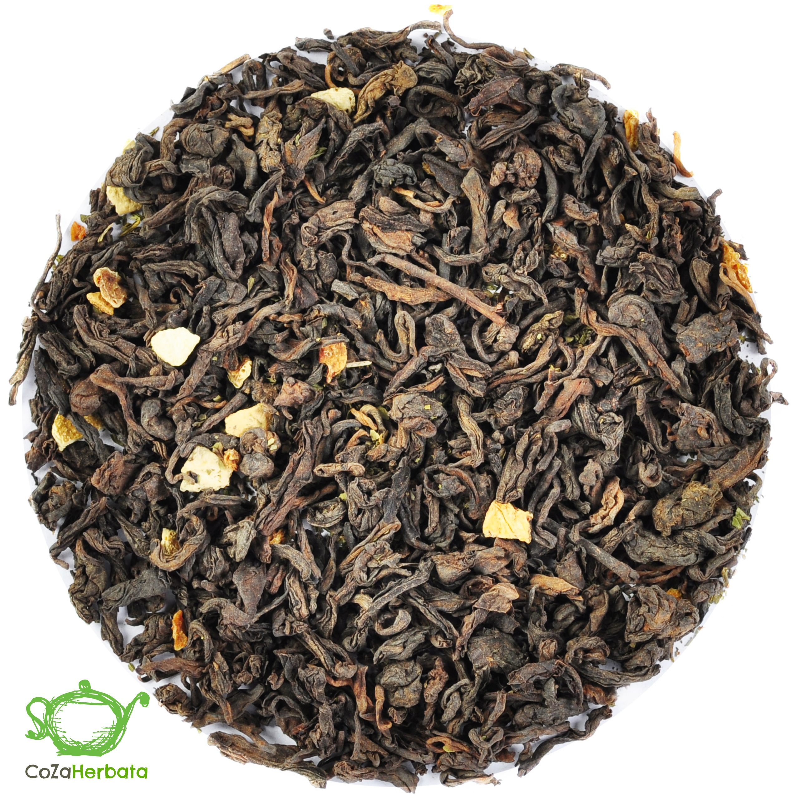 Пуэр, сирийская мята, кусочки апельсина, цедра лимона, аромат цитрусовых