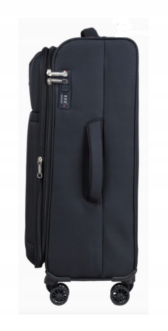 Модель можно переносить в руке за ручки, расположенные как сбоку, так и сверху чемодана (размер для салона имеет только верхнюю ручку). Кроме того, он имеет регулируемую раму, которая позволяет регулировать высоту ручки в соответствии с вашими индивидуальными потребностями. Благодаря маневренному шасси чемодан можно легко переместить в другое место независимо от качества дорожного покрытия. Четыре двойных поворотных колеса на 360* облегчают маневрирование чемодана во время движения. Дополнительно большие и средние чемоданы имеют следующее удобство: две большие защитные ножки, расположенные с правой стороны.