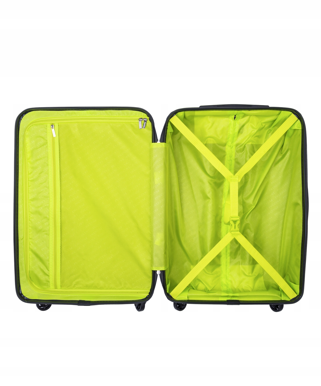 - Pлямки крепления, карман на молнии и перегородка между отделениямипозволяют содержать чемодан в чистоте и защитит одежду от складок.
