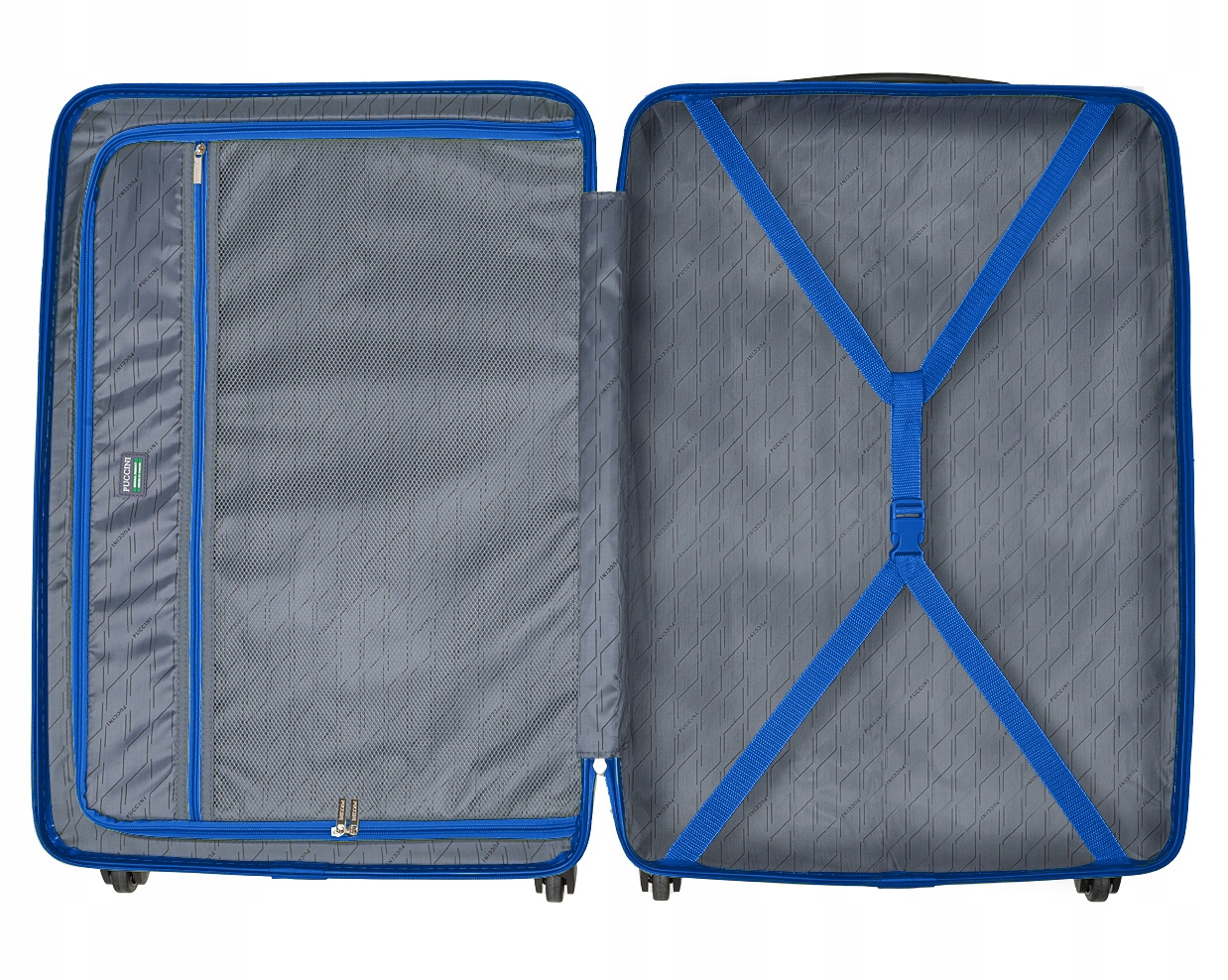 - Pлямки для крепления, карман на молнии и перегородка между отделения позволяют поддерживать чемодан в чистоте и предохраняют одежду от смятия.