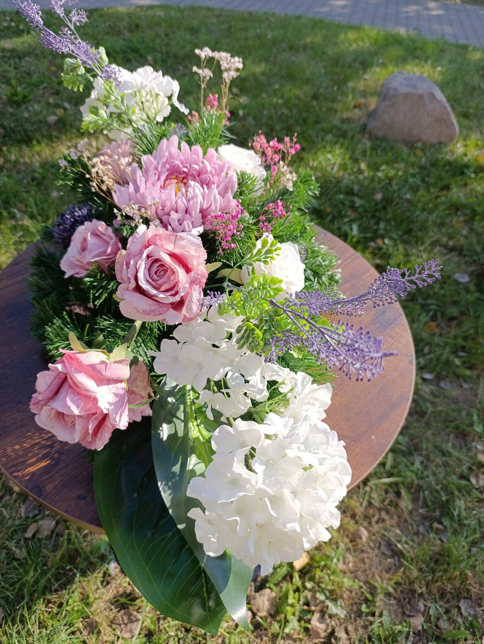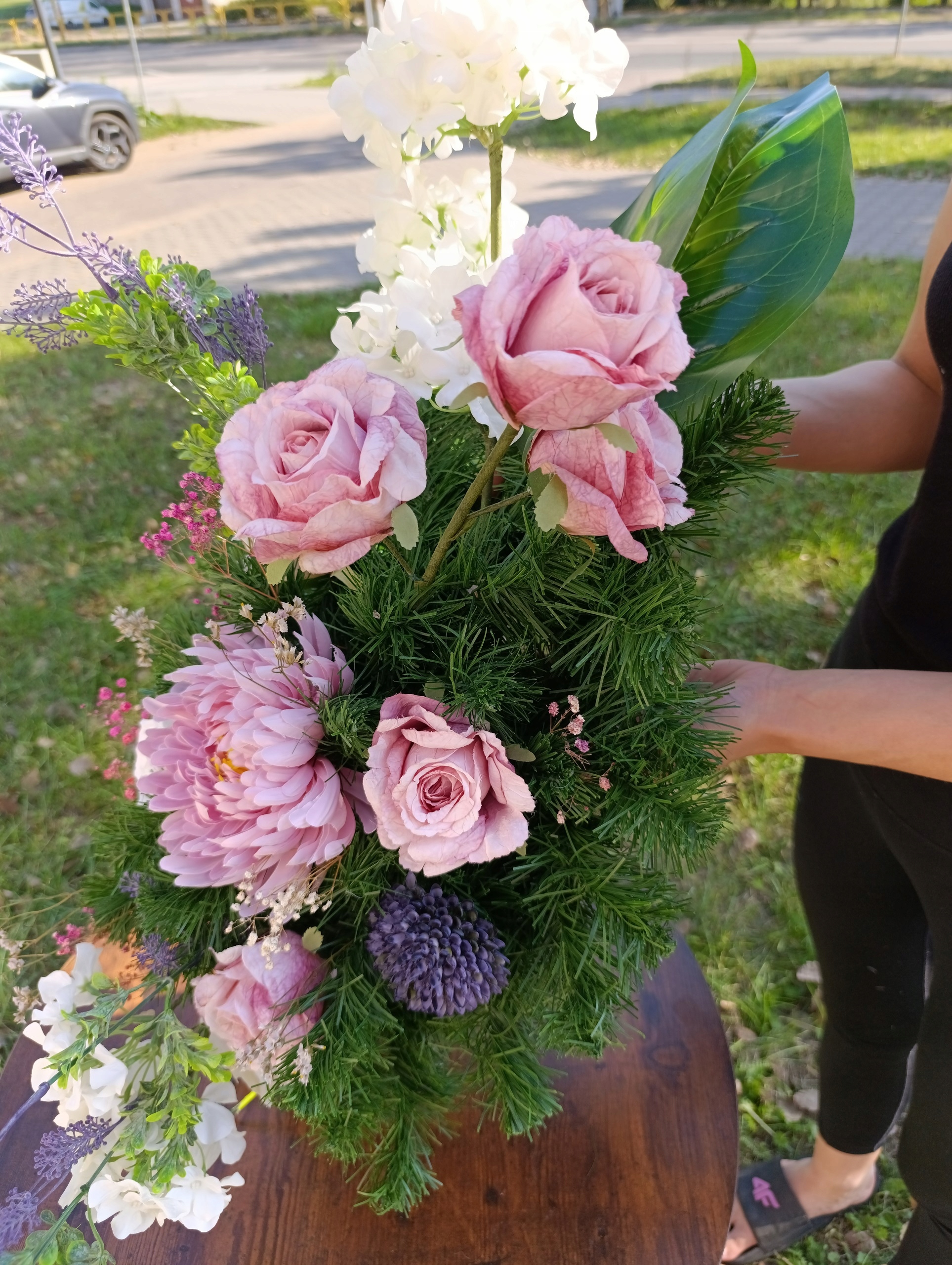 Оригинальная, оригинальная надгробная композиция ручной работы, выполненная во флористической студии «Квяты 2.0»