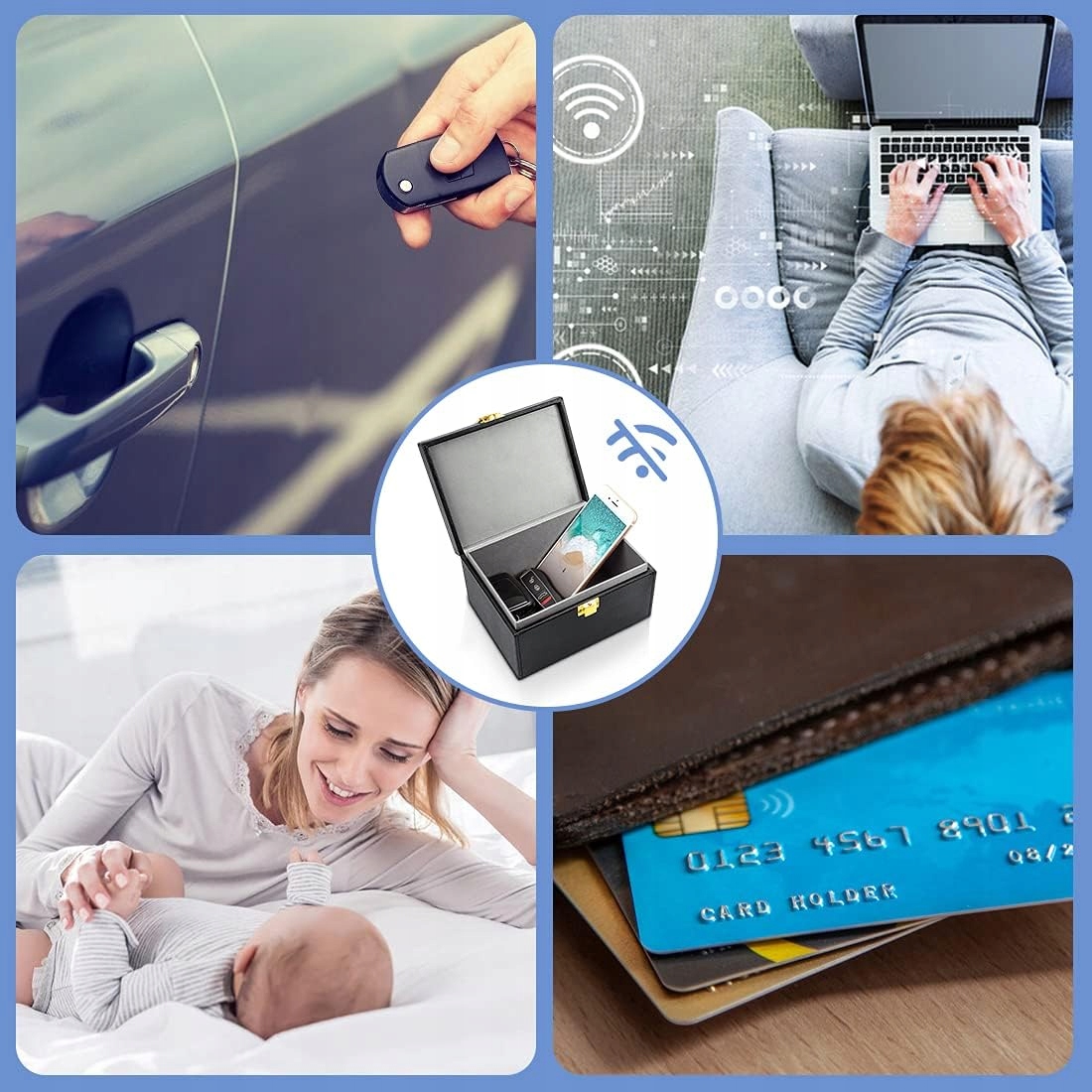 💎💎 ЗАЩИТА АВТОМОБИЛЯ БЕЗ ВХОДА КЛЮЧА.Этот комплект блокировщиков сигналов автомобильных ключей необходим для защиты вашего автомобиля. Ящик и сумки Фарадея эффективно защищают систему безопасности вашего автомобиля от взлома и кражи ключей без ключа.