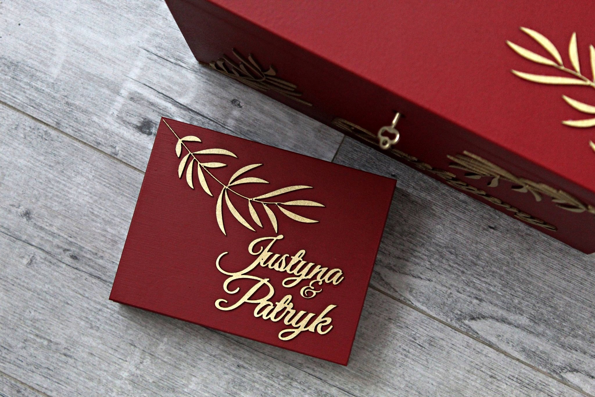 Pudełko na obrączki Glamour Bordowo Złote
