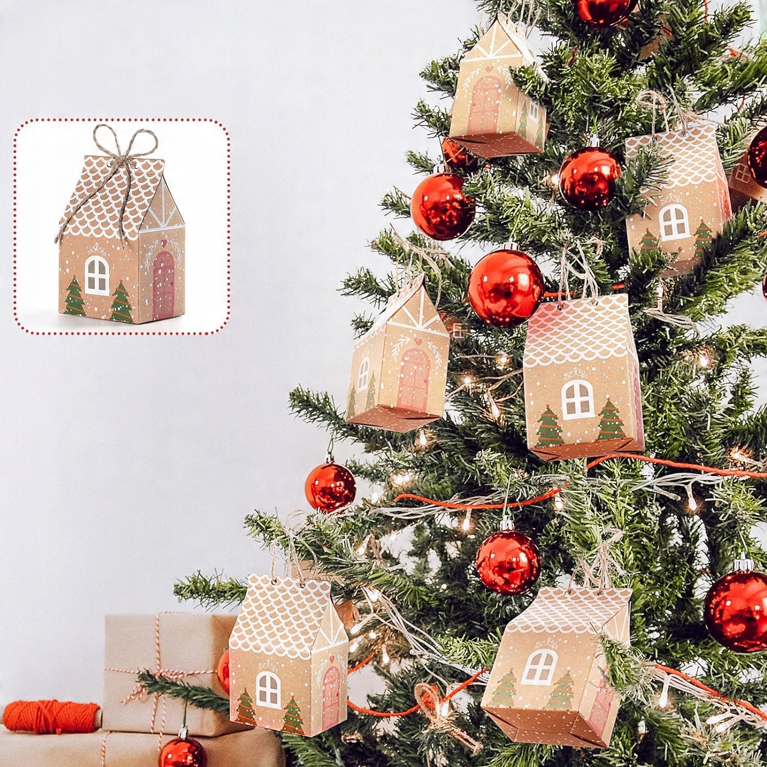 🎊🎊【Украшения рождественского фестиваля】 Наша сумка для рождественской вечеринки имеет форму небольшого домика и напечатана с праздничными элементами. , что делает ее лучшим выбором в качестве рождественской подарочной коробки в этот праздничный сезон. Коробки используются, чтобы произвести впечатление на семью, друзей и гостей на рождественской вечеринке.