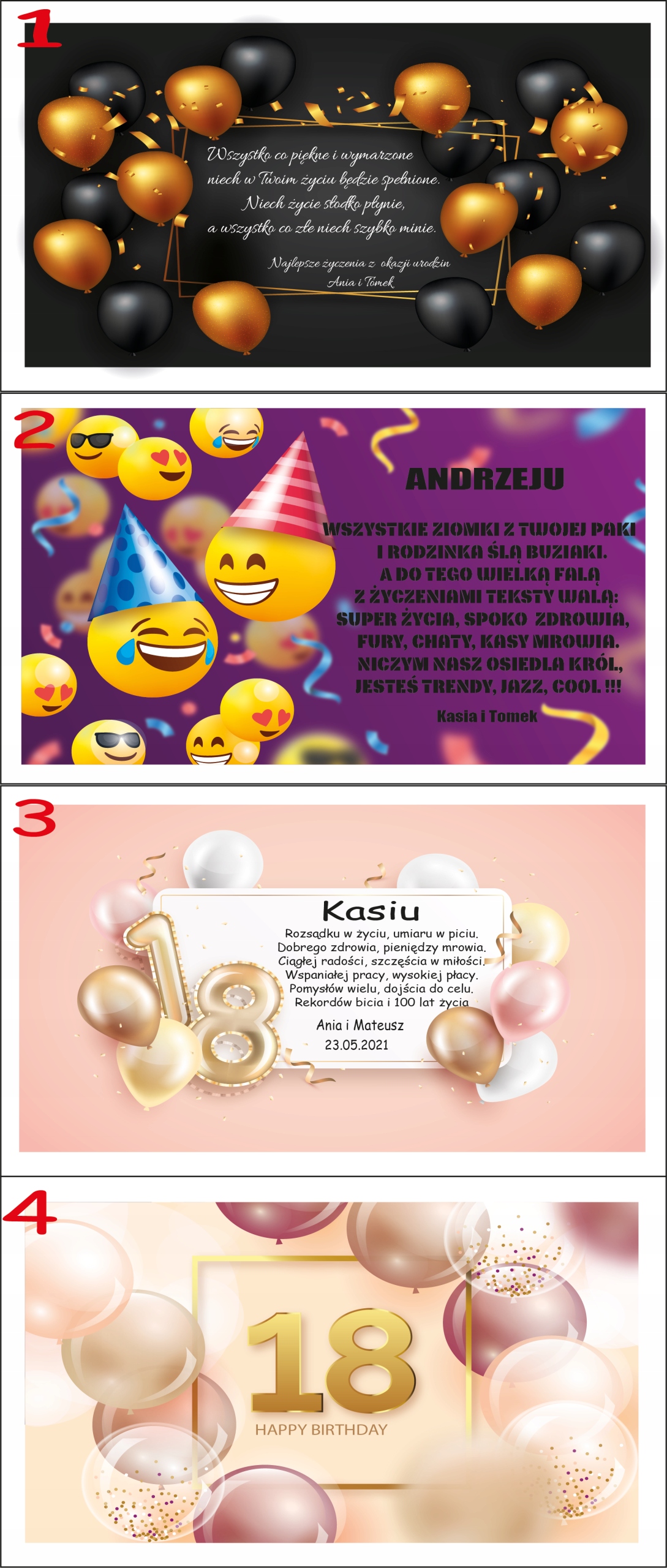 - пожелания с Вашим посвящением внутри коробки, распечатанные на профессиональных машинах на глянцевой фотобумаге