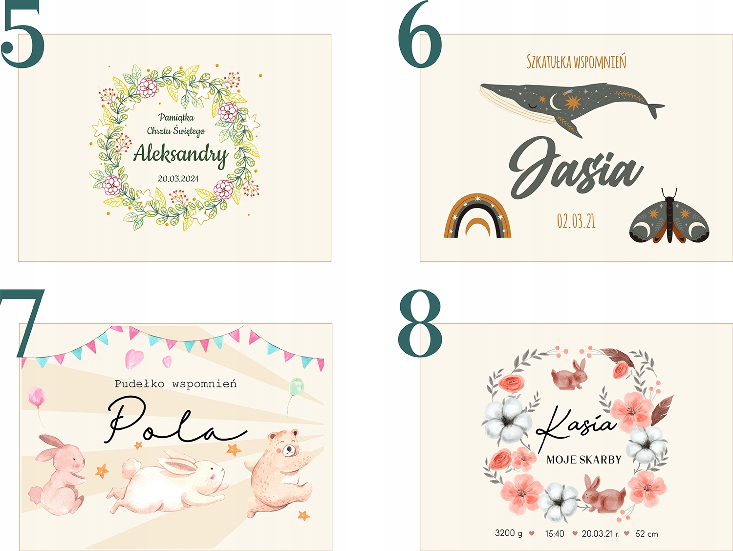 Pudełko wspomnień Chrzest Metryczka Roczek NADRUK