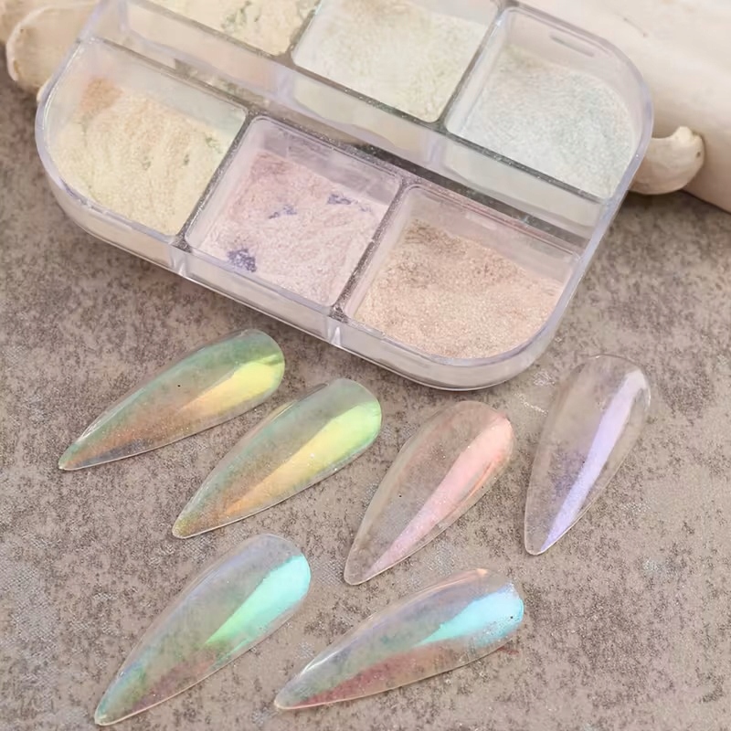 Пудра для ногтей с жемчужным эффектом, зеркальная глазурованная пончик Aurora, палетка 6 в 1