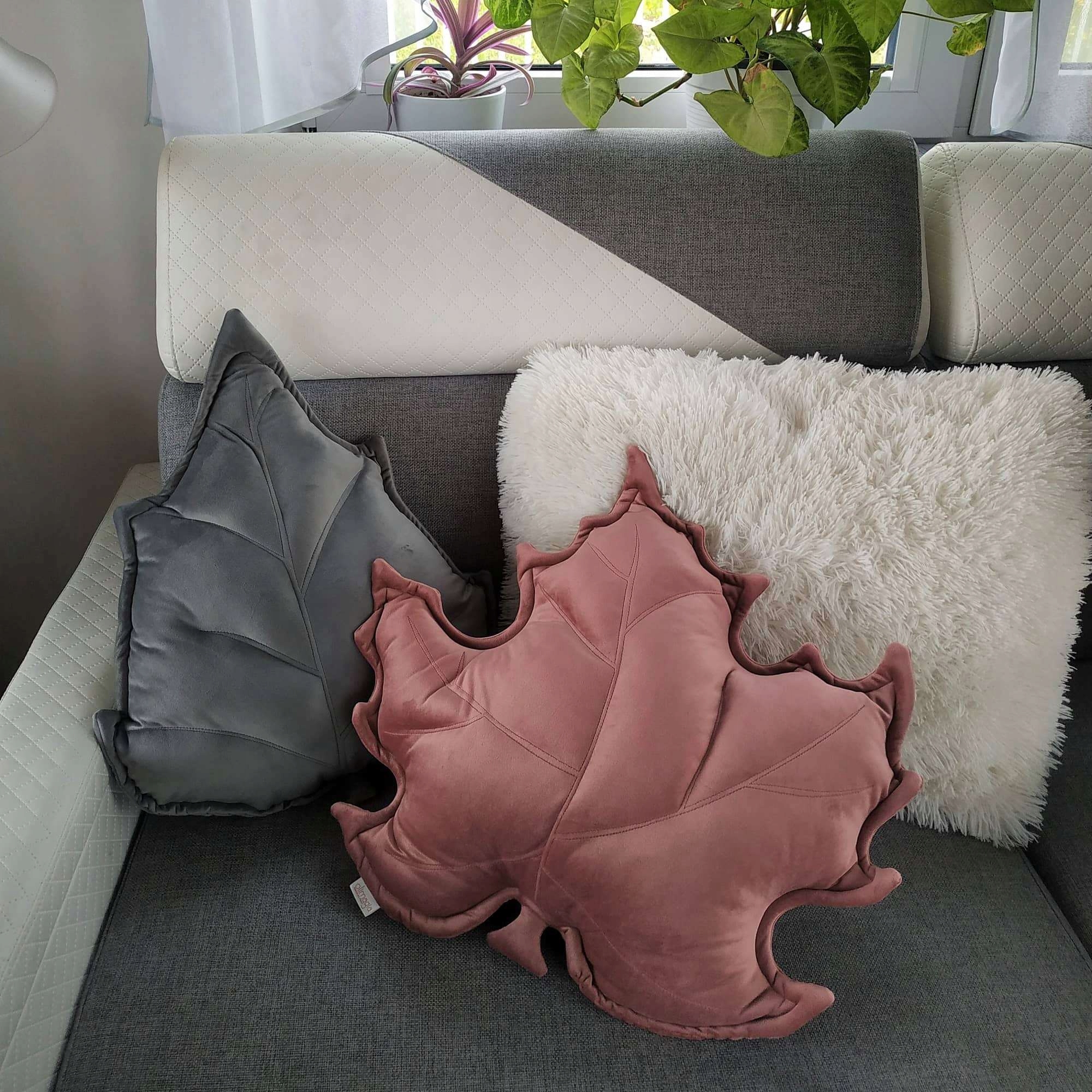 Велюровые подушки в форме листьев: элегантное украшение гостиной