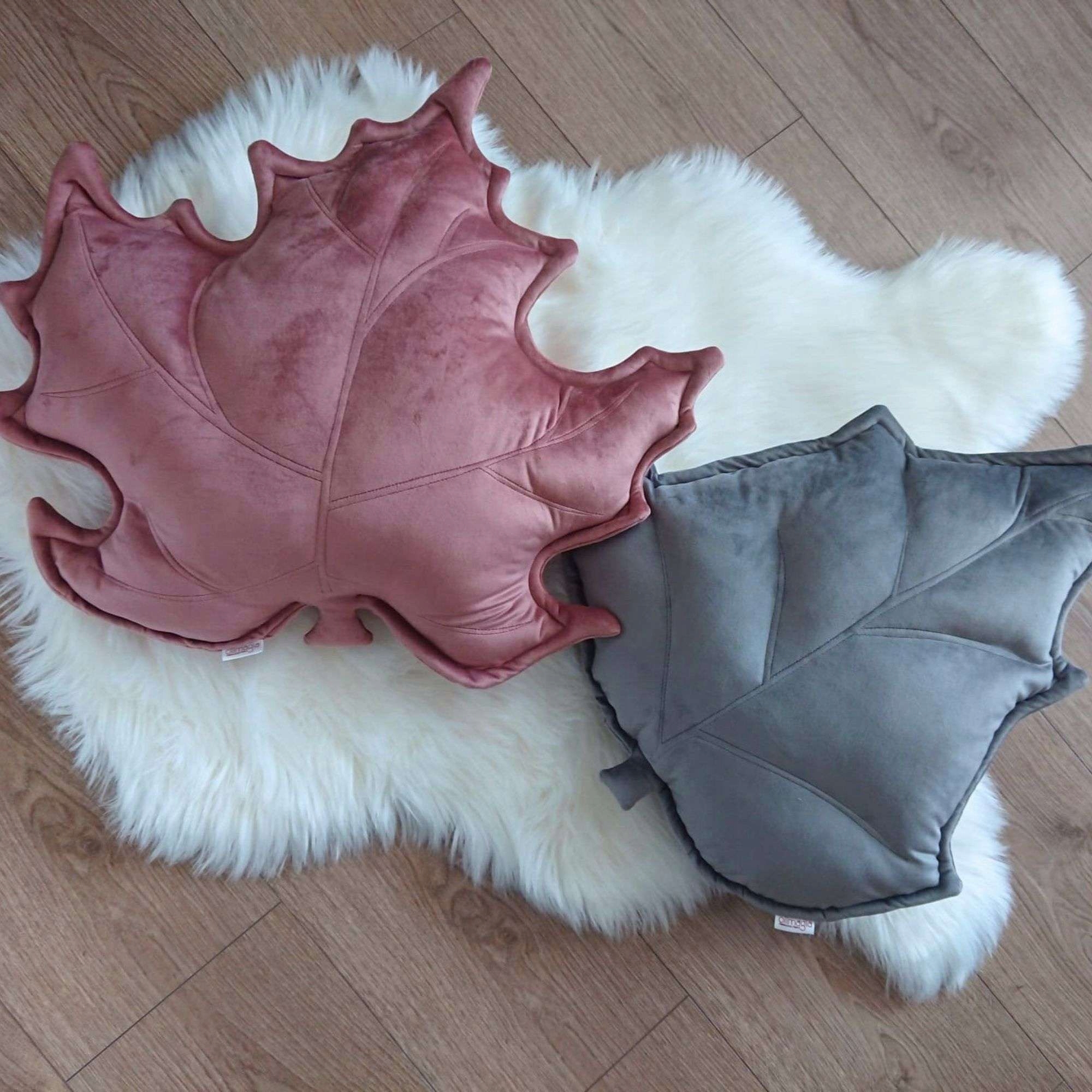 Пудрово-рожеві оксамитові подушки у формі ЛИСТЯ Декоративні оксамитові подушки