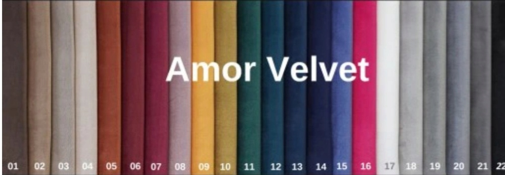 AMOR VELVET - плотная бархатная мебельная ткань, необычайно мягкая и бархатистая на ощупь. Обивочная ткань очень устойчива к истиранию. Одинаковый цвет с обеих сторон. Идеально подходит для использования на мебели, украшениях и шторах. Не содержит азокрасителей.Ткань AMOR имеет отделку, затрудняющую впитывание жидкостей Uniclean.